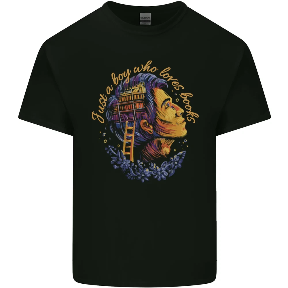 A Boy Who Loves Books Bookworm Reader Mens Cotton T-Shirt Tee Top