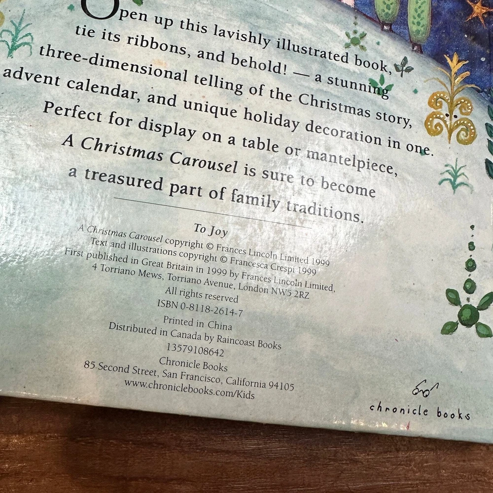 A Christmas Carousel Francesca Crespi Chronicle Books Lift The Flap Hardcover Board Gently read, one flap has a fold in it but otherwise great condition. ISBN 0-8188-2614-7