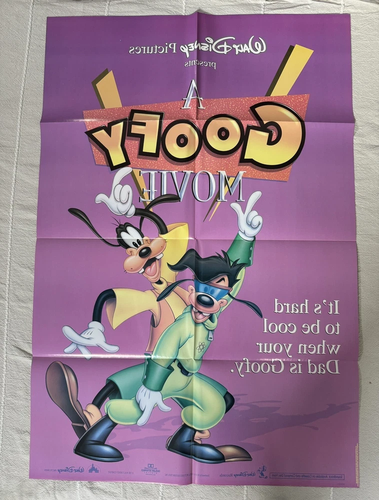 A GOOFY MOVIE 1995 Disney Original Folded Double-Sided Poster 27x40. Poster is an original, not a reproduction. Poster may display some fold wear and edge wear, but is in very good general condition. Some printing blemishes. Sold as is. Comes from a clean, smoke free home.