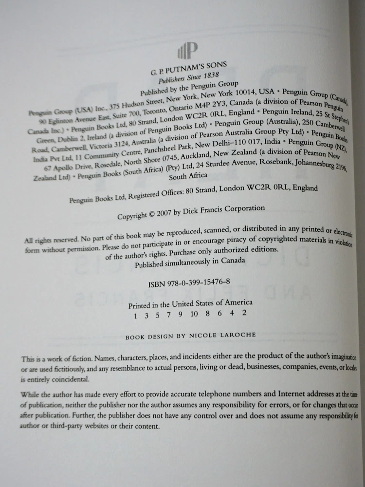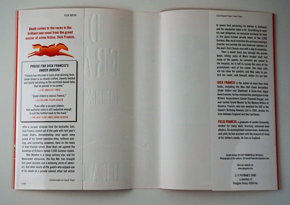 A Like New 2007 First Edition/First Printing of Dick Francis' "Dead Heat". Dick Francis is a British crime writer and former steeplechase jockey whose novels center on horse racing in England. An excellent example, sound in all respects with a Fine condition Dust Jacket. Photographs may not always reveal exact color, imperfections or detail but effort is made to describe each item honestly. Occasionally during inspection visible blemishes are missed. Bits and Bobs respectfully invites buyers to contact us directly, so we may personally address any customer’s concerns. Books and magazines are shipped via Media Mail and as such have a delivery schedule of 2-8 days. Thank you for your continued business. Bits and Bobs Marketplace Bits and Bobs Marketplace is the developing online shopping bazaar of an experienced eBay seller dedicated to providing useful, collectible or other special interest items to customers. Bits and Bobs - British for an assortment of nonidentical things gathered together.