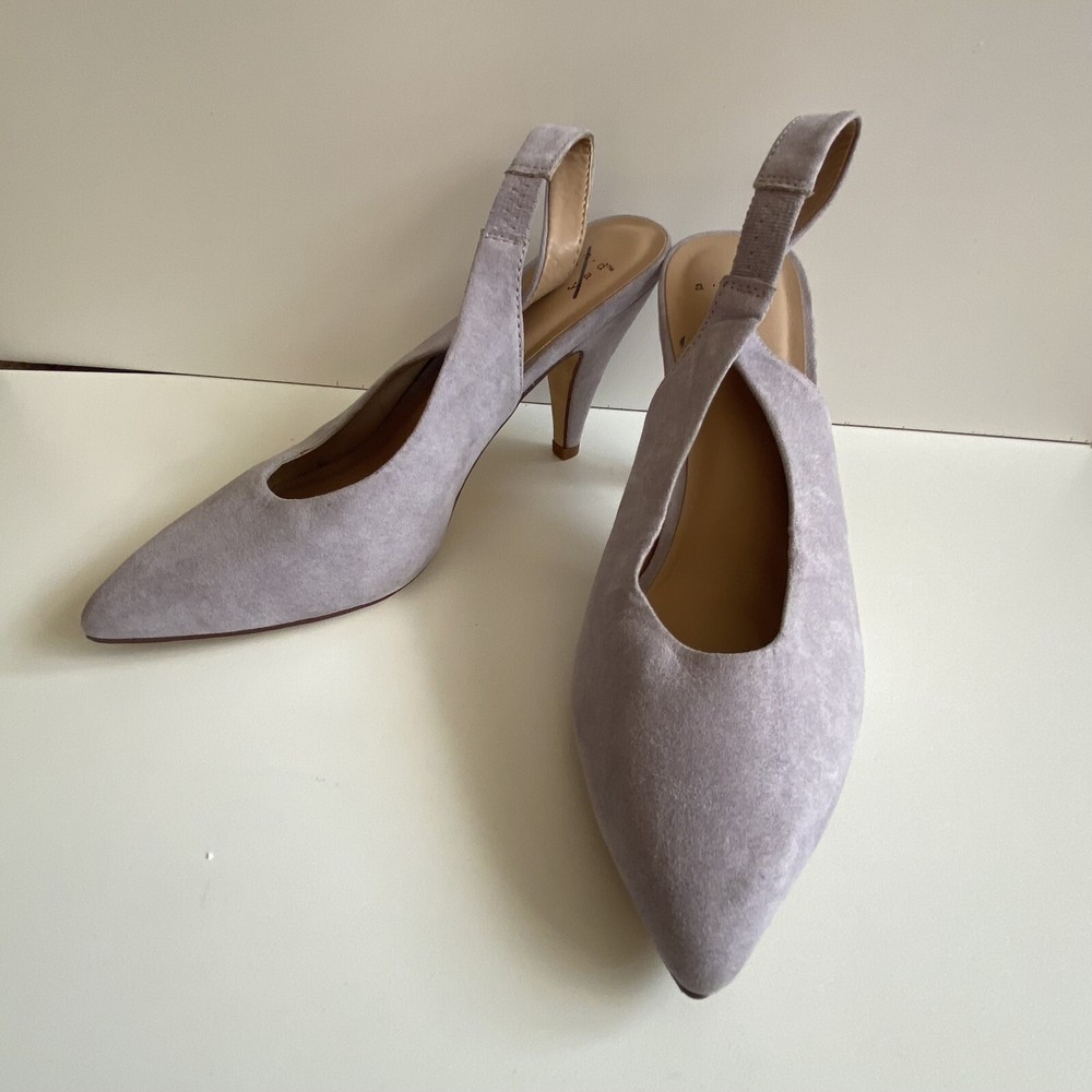 A New Day Wide Width Sling Back Microsuede High Vamp Heeled Pumps Shoe size 6.5. Shoes are in excellent condition Size 6.5 Color Lilac Fast Shipping Offers are Welcome