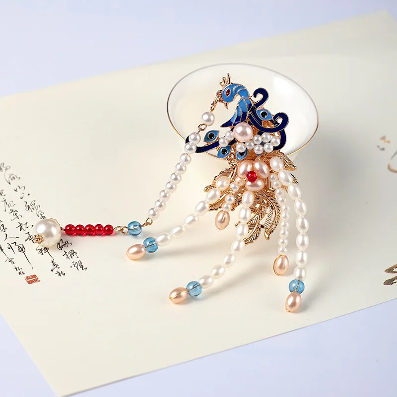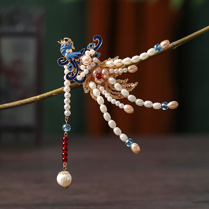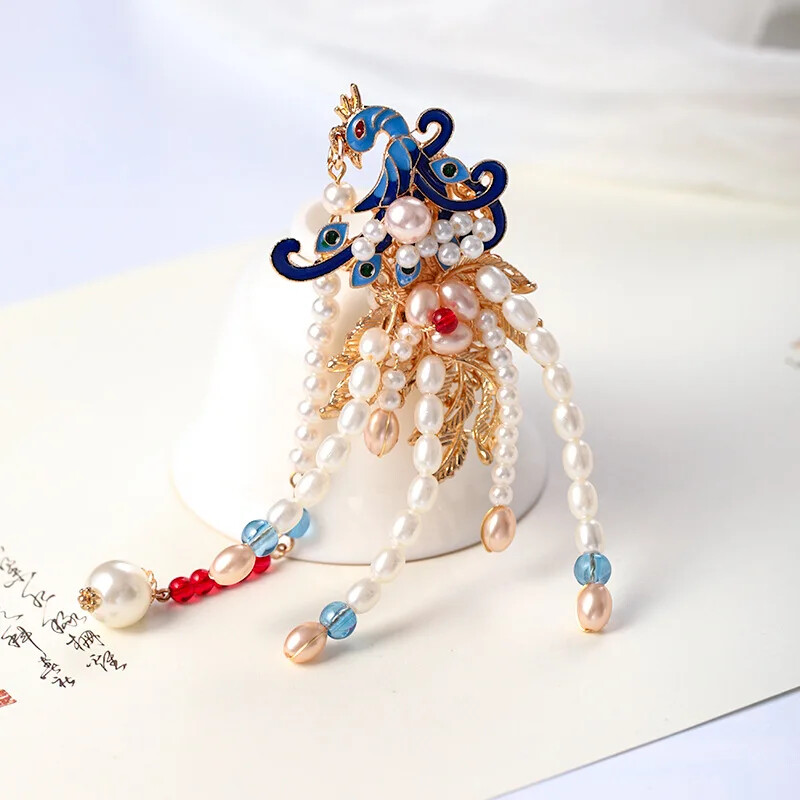 Retro Chinese Style Hairpins Clips Flower Pearls Long Tassels Handmade Collect