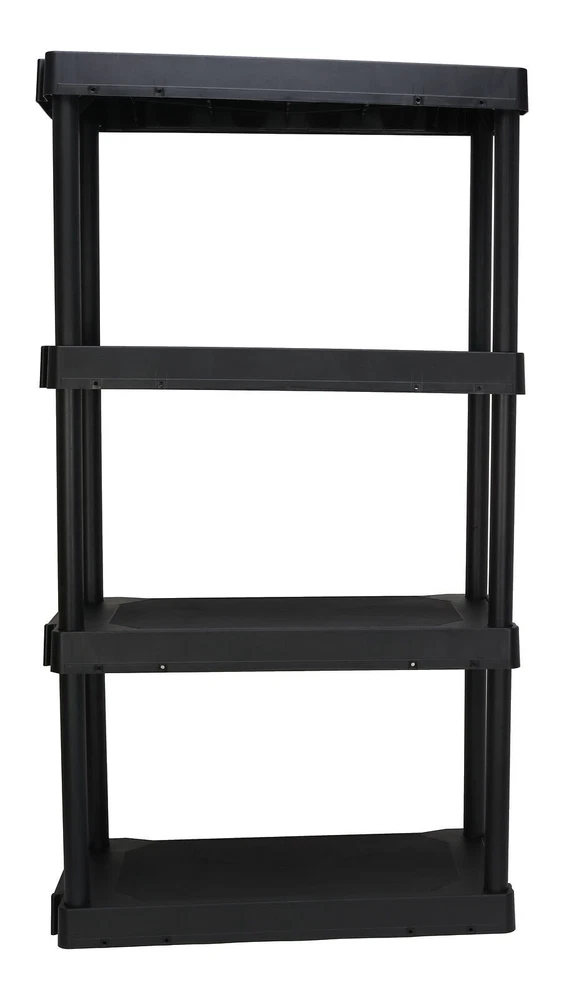 This Tough Black Plastic 4 Shelf Shelving Unit is a great solution for all your storage needs. This is perfect for any space where you might need reliable, sturdy shelving, such as, the garage, basement, utility room or closet. It is made from a durable and long-lasting black polypropylene plastic that can hold up to 70 pounds per shelf when evenly distributed. This product has interlocking shelves that require no tools to assemble and comes with a QR code video tutorial. This shelving unit is easy to maintain and is built for years of use. 280 lbs. total or 70 lbs. per shelf capacity when evenly distributed Made of durable black Polypropylene plastic Non-adjustable shelf is great for the garage, basement, utility room or closet Perfect for holding garden tools, garage items, or miscellaneous items Easy assembly - no tools required Total dimensions: 13.88" (D) x 30" (W) x 56.2" (H) Total weight in packaging: 11 lbs. Easy to clean Model Number: HT-BLK-4SH30 Color Black Recommended Location Garage Assembled Product Weight 11 lb Assembled Product Dimensions (L x W x H) 13.88 x 30.00 x 56.20 Inches On Nov 11, 2023 at 02:46:42 PST, seller added the following information: On Nov 8, 2024 at 02:02:15 PST, seller added the following information: