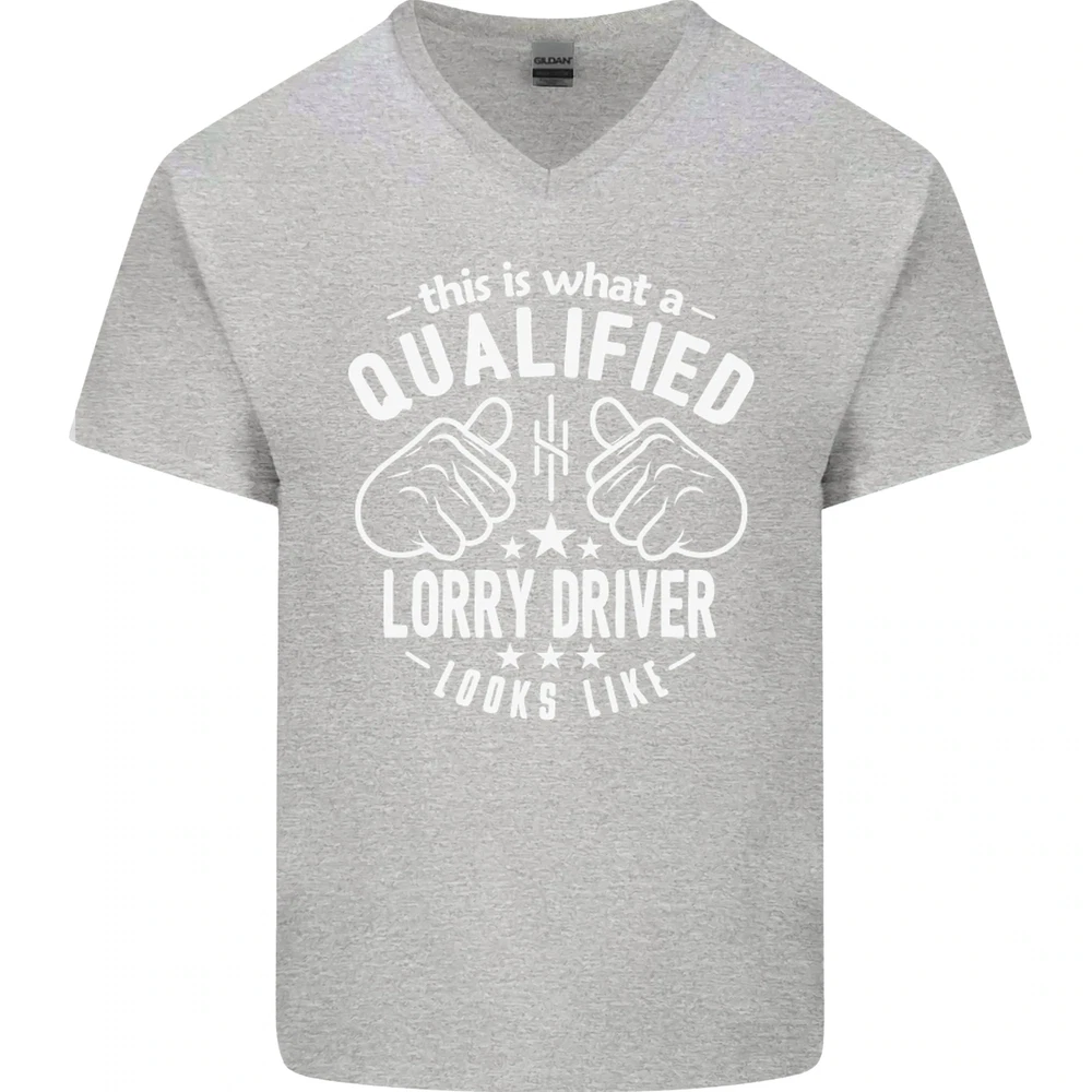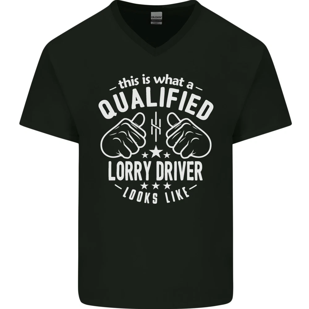 A Qualified Lorry Driver Looks Like Mens V-Neck Cotton T-Shirt