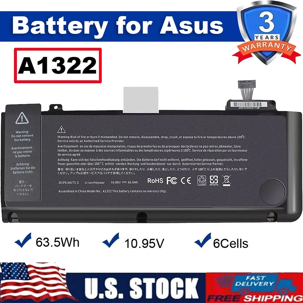 Specifications: Battery type: Li-Polymer Voltage: 10.95V Capacity: 5100mAh Condition: Brand New , 'A' grade cells, 100% Compatible! Certification: CE FCC RoHS Color: as pictures Package including: 1× A1322 Battery (in packing box) Offer 100% Satisfied Customers Service Item location : USA Stock Manufacturer Warranty : 3 Years Compatible Model: MacBook Pro 13-inch 2009 Version: (MB990LL/A, A1278, MacBookPro5,5) - only for Mid 2009 version (MB991LL/A, A1278, MacBookPro5,5) - only for Mid 2009 version MacBook Pro 13-inch 2010 Version: (MC374LL/A, A1278, MacBookPro7,1) - only for Mid 2010 version (MC375LL/A, A1278, MacBookPro7,1) - only for Mid 2010 version MacBook Pro 13-inch 2011 Version: (MC700LL/A, MacBookPro8,1) - only for Early 2011 version MacBook Pro 13-inch 2012 Version: (MD101LL/A, MD102LL/A, MacBookPro9,2) - only for Mid 2012 version Apple MacBook Pro 13-inch: MB990*/A MB990CH/A MB990J/A MB990LL/A MB990TA/A MB990ZP/A MB991*/A MB991CH/A MB991J/A MB991LL/A MB991TA/A MB991ZP/A MC700 MC700B/A MC700E/A MC700J/A MC700LL/A MC700TA/A MC700X/A MC700ZP/A MC724 MC724B/A MC724E/A MC724J/A MC724LL/A MC724TA/A MC724X/A MC724ZP/A MD313LL/A MD314LL/A Compatible Part Numbers: A1322 A1278: This item is only fit for Apple A1278(Mid 2009/Mid 2010/Early 2011/Late 2011/Mid 2012).Do Please confirm your laptop version when order 661-5229 661-5557 020-6765-A 020-6547-A MB991LL/A MB990LL/A Note: Please check carefully about your laptop model name/battery part number/battery shape and size to make sure you purchase the correct battery. Wholesale Discount Available (Contact us please)