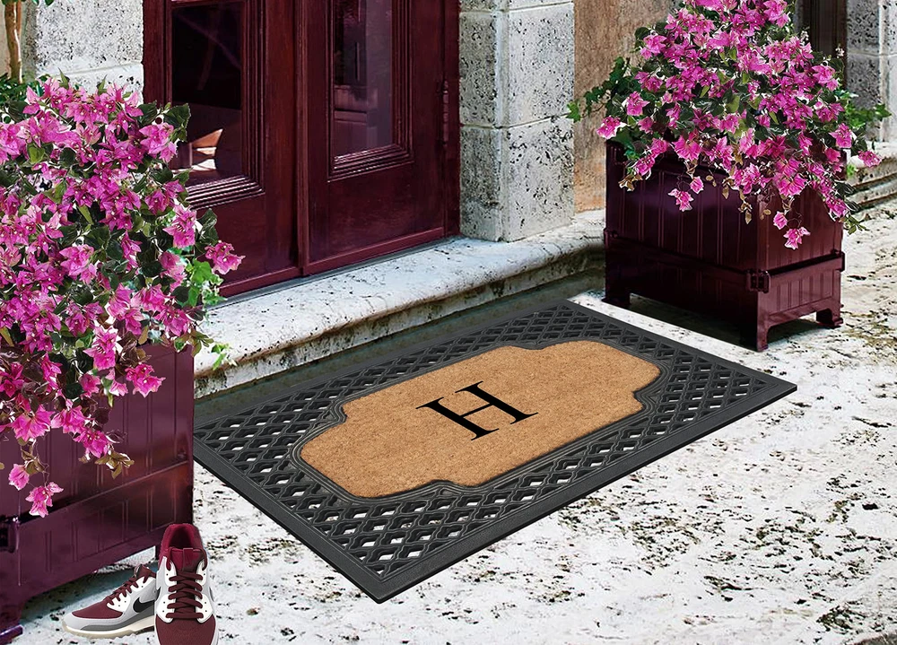 A1HC Natural Coir Monogrammed Anti-Shed Door Mat 23x38 for Front Entry