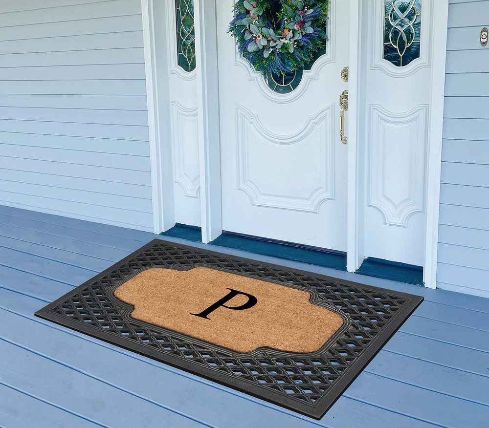 Keeps your floor clean when you decorate your entryway with this contemporary doormat, which includes a sturdy rubber backing to help in keep the rug in place & prevent slips. The attractive design of this rubber Doormat creates a welcoming entrance for your guests & the durable coir material holds up to lots of foot traffic. Recommended for outdoor use in covered areas. Vacuum or shake the mat regularly for longer life. NATURAL COIR PILE MONOGRAMMED FRONT DOOR MAT: This Door mat is made from 100% natural coir fibers which are of the strongest fibers and they naturally trap dust and other particles. The biodegradable coir fiber material is environmentally friendly and compostable. ATTRACTIVE DESIGN AND ANTI SHED TREATED FRONT DOOR MAT: This is a personalized designed door mat and every door mat is Hand monogrammed individually in the USA. LOW MAINTENANCE OUTDOOR MAT: Coconut coir is naturally resistant to unwanted substance, making this the most low-maintenance door mat possible. CARE INSTRUCTIONS: To prolong the life of your coir door mat do not place in area where it will remain wet for long periods of time with no sunlight for drying. Though we treat our door mats with anti shed dyes to minimizes shedding still shedding is normal during the first initial month of use. During this time brush (with soft brush), use a leaf blower, or shake the mat to maintain its best appearance. UNIQUE GIFT IDEA THEY WON’T FORGET: Looking for birthday gifts for mom, housewarming gifts for new homeowners, wedding gifts for bride and groom, or hostess gifts for women who have everything? Our large size monogrammed front door mat is sure to please everyone. Our unique & beautiful hand monogrammed door mat makes a thoughtful, functional, and versatile gift that will last for years.