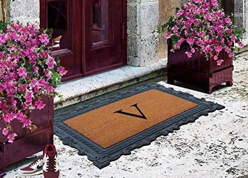 Like all of our door mats, our Monogrammed Coco Door Mat is as durable as it is beautiful. Handmade from 100% coir, an all-natural material known for its scrubbing power and resistance to the elements. Dyes saturate the fibers for vibrant color. Specify you single-letter monogram for the perfect finishing touch, or enjoy the classic border motif alone NEWLY DEVELOPED RUBBER AND COIR MONOGRAMMED DOOR MAT : This is a completely newly designed door mat, suitable for both single and double doors. The large size monogrammed door mat is made of Natural Coir fiber and high quality rubber. This coir door mat has a large coir area to clean and wipe your shoes which keeps your house clean. Molded door mats are stronger and more durable lasting thrice as long as regular door mats. Each outdoor rug is QC inspected for 20 quality check points. NATURAL COIR PILE MONOGRAMMED FRONT DOOR MAT: This Door mat is made from 100% natural coir fibers which are of the strongest fibers and they naturally trap dust and other particles. The biodegradable coir fiber material is environmentally friendly and compostable. HEAVY DOOR MAT WITH RUBBER BACKING: This Doormat is heavy weight with a solid rubber backing. This door mat doesn’t get easily blown away by wind and anchors to the ground to prevent slipping. ATTRACTIVE DESIGN AND ANTI SHED TREATED FRONT DOOR MAT: This is a personalized designed door mat and every door mat is Hand monogrammed individually in the USA. The coir portion of this door mat is treated with Anti Shed dyes to minimize shedding. The rubber molded doormat easily lasts 3 times longer than usual doormats since the rubber adds to the durability making it suitable for high traffic areas. LOW MAINTENANCE OUTDOOR MAT: Coconut coir is naturally resistant to unwanted substance, making this the most low-maintenance door mat possible.