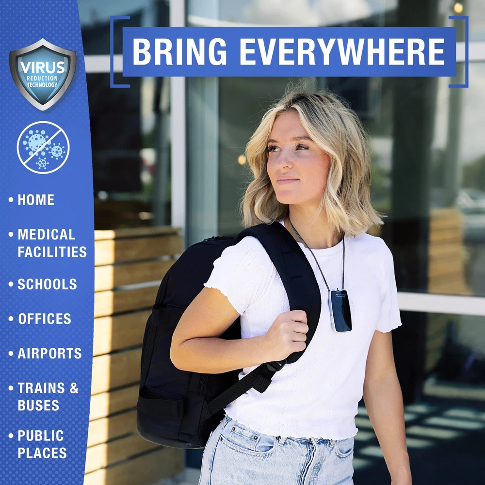 BREATHE CLEANER SAFER AIR: The A310PMB is the leading personal air purifier on the market using cutting-edge technology to emit negative ions and push airborne pollutants away from your breathing zone; The Electrostatic Purification radiates a 3-foot orbit of safer air in any direction, creating a sphere of protection against harmful pollutants. GOODBYE FILTERS: Say goodbye to the hassle of replacing filters; The A310PMB uses the latest technology in air purification; Using electrostatic purification, the A310PMB emits millions of negative ions into the air forcing dangerous pollutants out of your sphere of clean breathable air. MY BATTERY DIED – OH WAIT IT’S RECHARGEABLE: Replacing Batteries becomes a thing of the past, with the A310PMB; This portable personal purifier operates for 150+ hours on one single charge ensuring your protection against airborne pollutants. TAKE IT ON THE GO: The A310PMB is the perfect travel accessory for those who love to explore without exposure to unsanitary air; Our A310PMB model includes a proprietary conductive lanyard which is adjustable and features a break-away connector for extra safety; Wear it around your neck and have a sphere of breathable clean air anywhere you go. SPECIFICATIONS: Power Boost Technology provides 9 times more cleaning power; Breathe 875% cleaner air, the A310PMB is certified to filter more pollutants than any of its closest competitors; Silent operation, no noisy fans or motors; No filters to change; USB charging cable, lanyard, and leather travel case are included.
