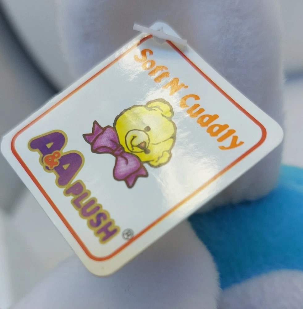 A&A Plush Bunny Rabbit "Sleeper" white bunny in blue outfit sleepy 6".