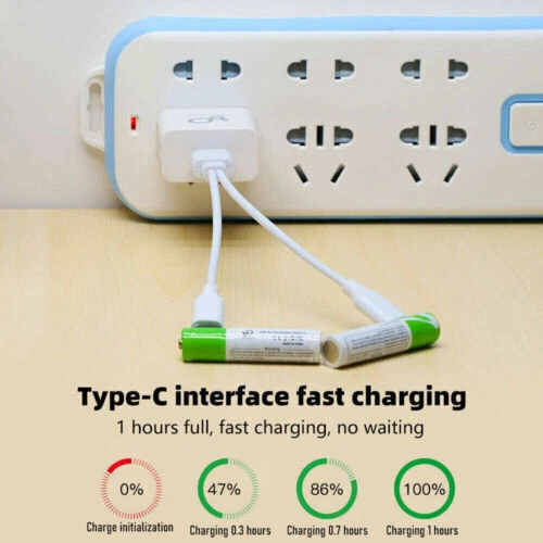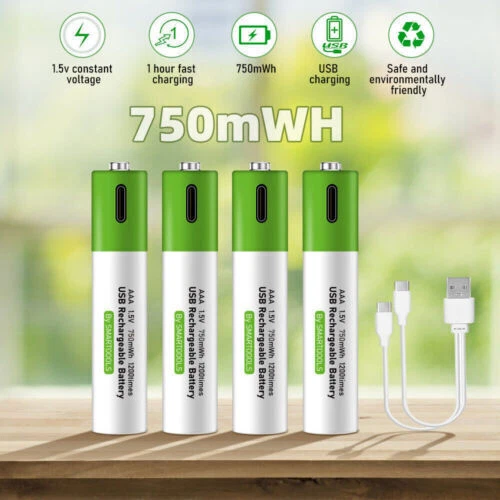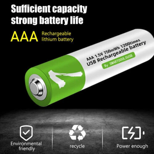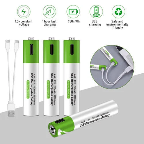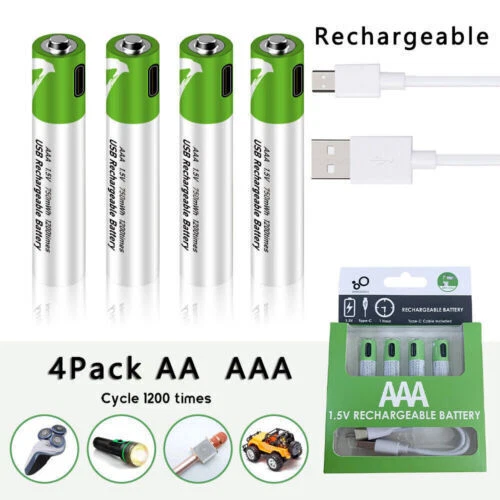 Product Description Features *SWITCH TO RECHARGEABLE: Stop wasting money on standard alkaline batteries! Switch to our rechargeable lithium batteries for the same great performance. Reuse the batteries repeatedly. Be eco-friendlier and more cost-effective * Type C USB CHARGING: Directly plug a Type C USB into the input for quick and easy charging. Use the included cable to connect connect 1 batteries to any USB power supply. Connect to an AC adapter, power bank or computer, and fully charge in around 1.5 hours. Long lifecycle will allow over a 1200 uses * LED INDICATORS: When charging, the red LED will blinks and will then LED remains on once it is fully charged. Conveniently see the charging status of each battery *LARGE CAPACITY: High capacity provides sufficient power for a wide range of products. Perfect for controller, keyboard, mouse, toys, calculator, toothbrush and much more Specification. Product: AA AAA rechargeable lithium 1.5v batteries - 4-pack Nominal voltage: 1.5V Nominal capacity Ah: AA--2600mwh / AAA--750mwh Scope of application: camera, video camera Charging voltage: 5V Indicator light: flashing when charging, always on when full Battery temperature: -20 ℃ -60 ℃ Protection function: with charge and discharge protection plate Advantages. 1. 1200 times of cycle charging. 2. support TYPE-C cable direct charging, support cell phone chargers, computers, mobile power and other charging methods, without having to buy a traditional charger. 3. 1.5 hours fast charging: using Type-C data cable charging, fully charged in just 1.5 hours, intelligent turn light, no need to have another charger. Package include 4/12pcs Lithium ion Rechargeable Battery 1x usb cable About Us Payment Shipping Terms Contact Us Welcome to my eBay Store. Please add me to your list of favorite sellers and visit often. Thank you for your business. 1.We only accept eBay payments. 2.All payments must be made within 3 days after auction won. 1.Delivery address on ebay . 2.Handle Time: All your orders will process in one to three business day after clear payment . We offer caring customer service and no hassle refunds. If for any reason you feel that you cannot leave positive feedback and 5 star ratings, please contact us within 30 days from the date of order for a return or refund. We are not satisfied until you are. Pursue "better" product quality, "faster" transportation speed, and serve you wholeheartedly!You can enjoy Discount and 30 days free return.Any questions, please contact us by email , we will solve it for you as soon as possible, Enjoy Here! About Us Welcome to my eBay Store. Please add me to your list of favorite sellers and visit often. Thank you for your business. Payment 1.We only accept eBay payments. 2.All payments must be made within 3 days after auction won. Shipping 1.Delivery address on ebay . 2.Handle Time: All your orders will process in one to three business day after clear payment . Terms We offer caring customer service and no hassle refunds. If for any reason you feel that you cannot leave positive feedback and 5 star ratings, please contact us within 30 days from the date of order for a return or refund. We are not satisfied until you are. Contact Us Pursue "better" product quality, "faster" transportation speed, and serve you wholeheartedly!You can enjoy Discount and 30 days free return.Any questions, please contact us by email , we will solve it for you as soon as possible, Enjoy Here! powered by