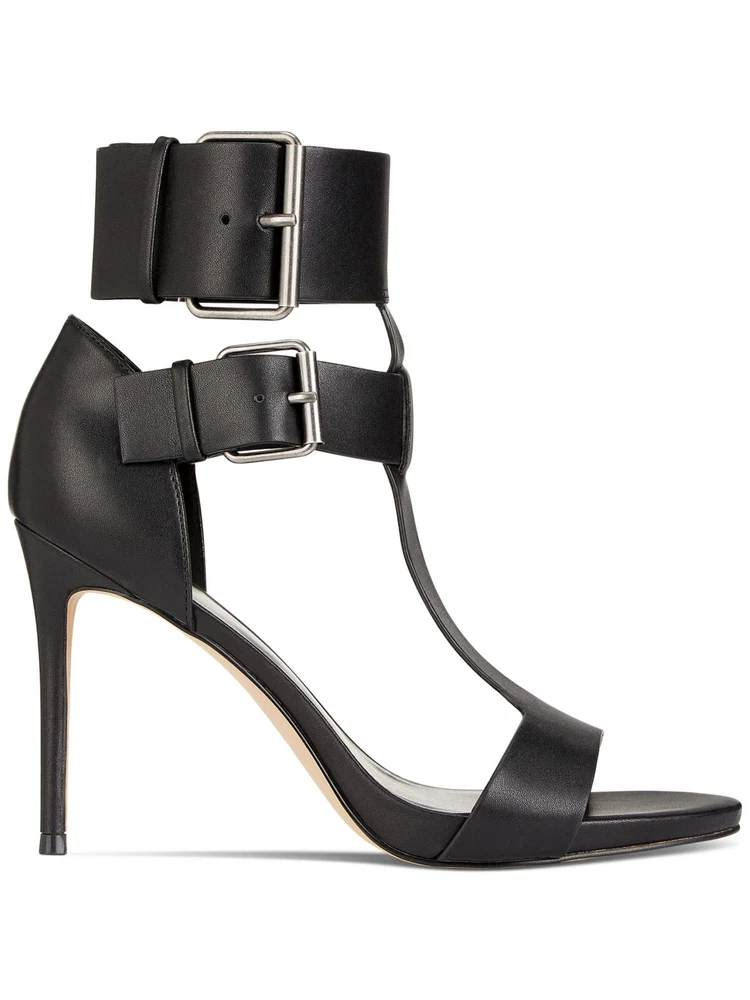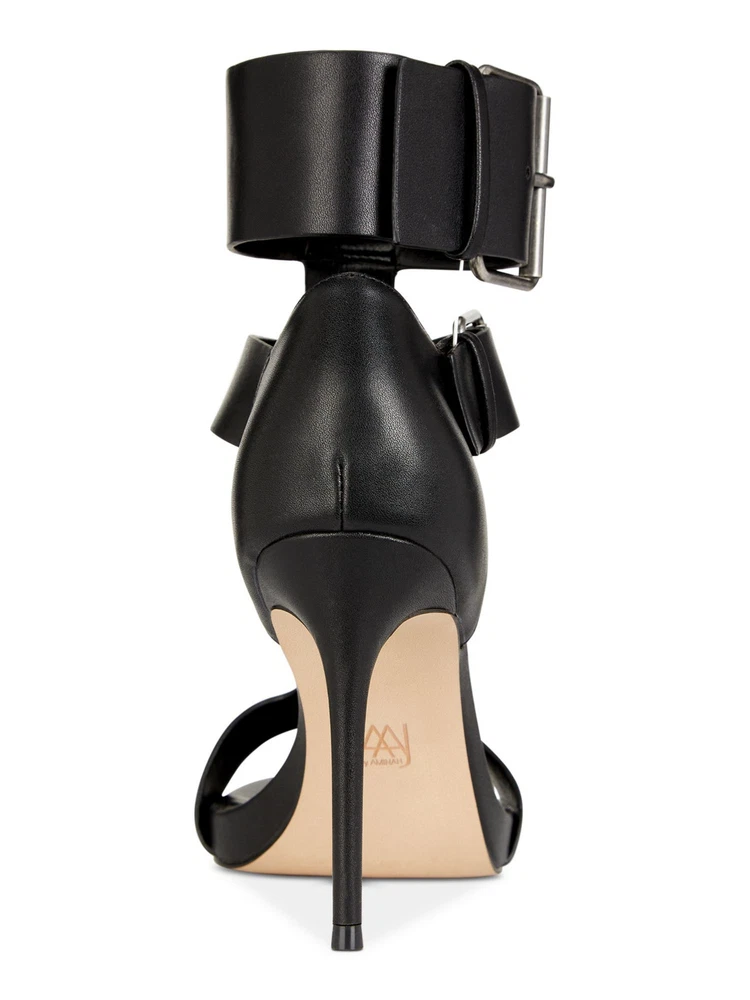 AAJ BY AMINAH Womens Black Double Zahra Open Toe Stiletto Heeled Sandal 9.5 M