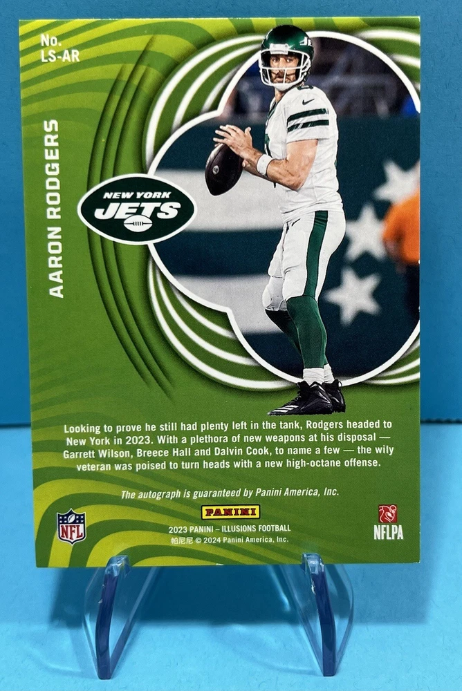 AARON RODGERS 2023 ILLUSIONS LIMELIGHT SIGNATURES GREEN AUTO # 24/25. Condition is Ungraded. Shipped with USPS First Class.