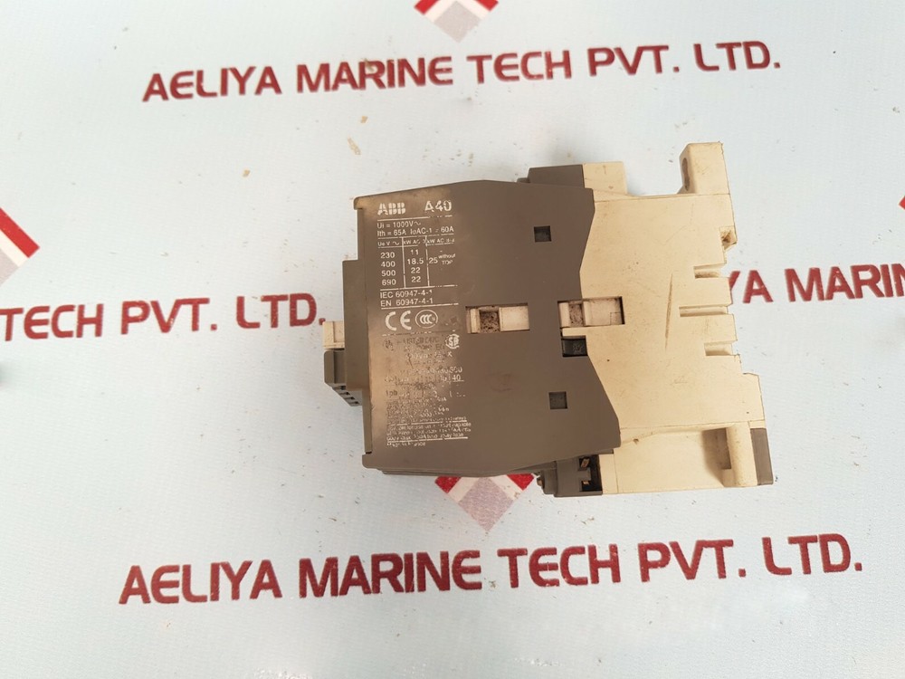 Aeliya Marine Tech Pvt. Ltd 100% Genuine Products | Free & Fast Shipping | 30 Days Return Policy Top Rated Plus Seller From India Product Description: ABB A40-30-10 Contactor 415-440V 50HZ/440-460V 60HZ ABB A40-30-10 ABB A40-30-10 A40 UI=1000V~ ITH=65A LEAC-1=60A IEC 60947-4-1 EN 60947-4-1 A1 A2 415-440V 50HZ 440-460V 60HZ R87 WEIGHT: 660 GM REF NO : 10129 Thank you! Payment Policy: We accept only eBay Managed Payments. Payment must be made within 3 days of winning the item. Late payments may lead to cancellation and relisting. If you have questions about payment, contact us through eBay messages. PayPal accepts multiple payment methods and handles currency conversions. Buyer is responsible for all VAT/customs/import duties. We ship to the address provided at the time of payment. Please ensure accuracy or message us if it needs to be changed. Order tracking is provided once dispatched. Shipping Policy: Orders are dispatched within 24 hours (1 business day), and heavy items within 3 business days. Worldwide delivery via DHL, FedEx using DAP (Delivered At Place) basis. Buyer is responsible for any customs, VAT, or other charges imposed by authorities. Tracking details will be shared after dispatch. Ensure shipping address is correct; changes must be communicated before dispatch. We are not responsible for changes after dispatch or lost parcels. Estimated delivery: 7 working days from India (delays possible due to customs or international policy). Contact us if the item is not received within the estimated time. Shipping Notes: Items do not include batteries due to shipping regulations. Return Policy: Return Window: 30 days from delivery. Item must be returned in original condition with packaging and accessories. Contact us via eBay messages for return instructions. Refunds issued after item inspection. Restocking fee may apply if not in original condition. Seller pays return shipping for incorrect/damaged items. Buyer pays return shipping for mistakes or dislike. We strive for 100% customer satisfaction . Please contact us for any issues before initiating a return. Feedback & Customer Care: We aim for 5-star feedback and a positive customer experience. Please leave us positive feedback if you're satisfied. If you have any concerns, contact us first before leaving neutral/negative feedback. We are here to help. We are committed to resolving any issues swiftly and fairly, including offering replacements or refunds if necessary. About Us: Aeliya Marine is a premier stockist and supplier of marine machines and parts, based in Bhavnagar, Gujarat, India since 2015. We serve clients globally with a focus on quality and service. Our skilled team offers custom-made solutions, and our product range is among the most comprehensive in the industry. Whether you need spare parts, machines, or custom solutions, we are here to help. Working Hours: Monday to Saturday: 9:30 AM - 6:30 PM (IST) Closed on Sundays and Indian public holidays. Trademark/Brand Disclaimer: All product names, trademarks, brands, and logos mentioned in this listing are the property of their respective owners. They are used strictly for identification purposes only. We are an independent reseller of surplus and pre-owned industrial equipment and are not an authorized distributor, dealer, or affiliate of the manufacturer unless explicitly stated.