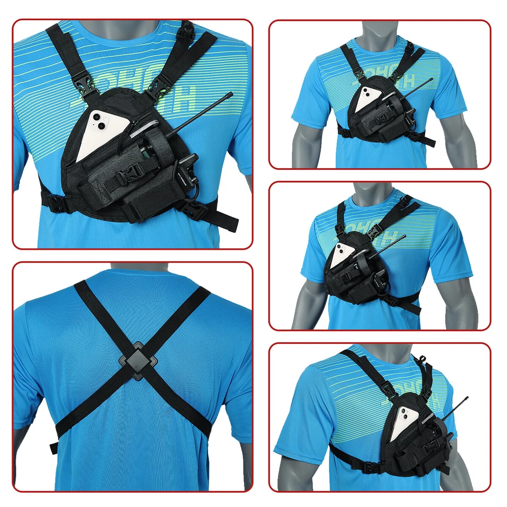 ABBREE Radio Chest Harness Holder Adjustable Shoulder Chest Front Pack Two Way Radio Pouch Holster Vest Rig Walkie Talkie Case 【High Quality and Unique Design】Made of durable nylon material, waterproof, dirt-resistant and easy to clean,It has multi ple pockets for placing walkie-talkies or other accessories to free your hands. 【Easy To Carry And Use】Adjustable elastic and soft shoulder straps, leave your shoulders relax, suitable for both men and women. 【Apply To Multiple Occasions】With Two Radio Pockets,One Large Zippered Pockets for First Aid Supplies,Charger etc;It’s suitable for walkie-talkies (handsets) and GPS of various sizes. In actual use, these pockets can also hold electronic devices such as mobile phones and MP3 players;Applicable occasions: police, production workshop, construction sites, such as a dangerous place, convenient carrying walkie-talkie equipment and a variety of operating tools. 【Highly Breathable】It takes up little space on the back and is highly breathable.Velcro and webbing buckle design can effectively ensure the stability of carrying items. 【 Multi-Function 】 The radio chest bag is made of durable nylon material,adjustable shoulder straps do not hurt the shoulder, suitable for both men and women. The multi-pocket zipper design is economical, beautiful and affordable. It takes up little space on the back and is highly breathable. Velcro and webbing buckle design can effectively ensure the stability of carrying items. These pockets can also hold electronic devices such as mobile phones and MP3 players. 【 Package Include 】 1 X Nylon Radios Pocket