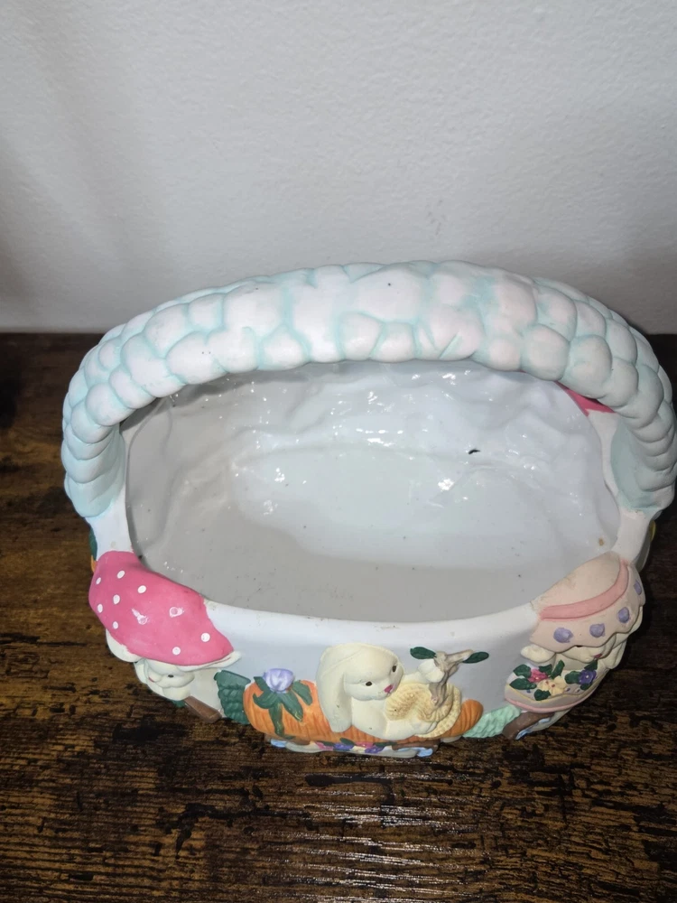 Celebrate Easter with a touch of nostalgia using the Vintage ABC Distributing 1995 Ceramic Blue Easter Basket, adorned with charming bunny decorations. This collectible piece from 1995 brings a festive and whimsical vibe to your holiday decor, perfect for those who appreciate retro aesthetics. Crafted with care, the basket boasts a vibrant multicolored design that captures the spirit of the season. Ideal for adding to your collection of holiday memorabilia or as a unique centerpiece for your Easter table, this ceramic treasure from ABC Distributing Inc. is sure to spark conversation and fond memories.