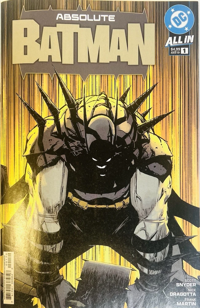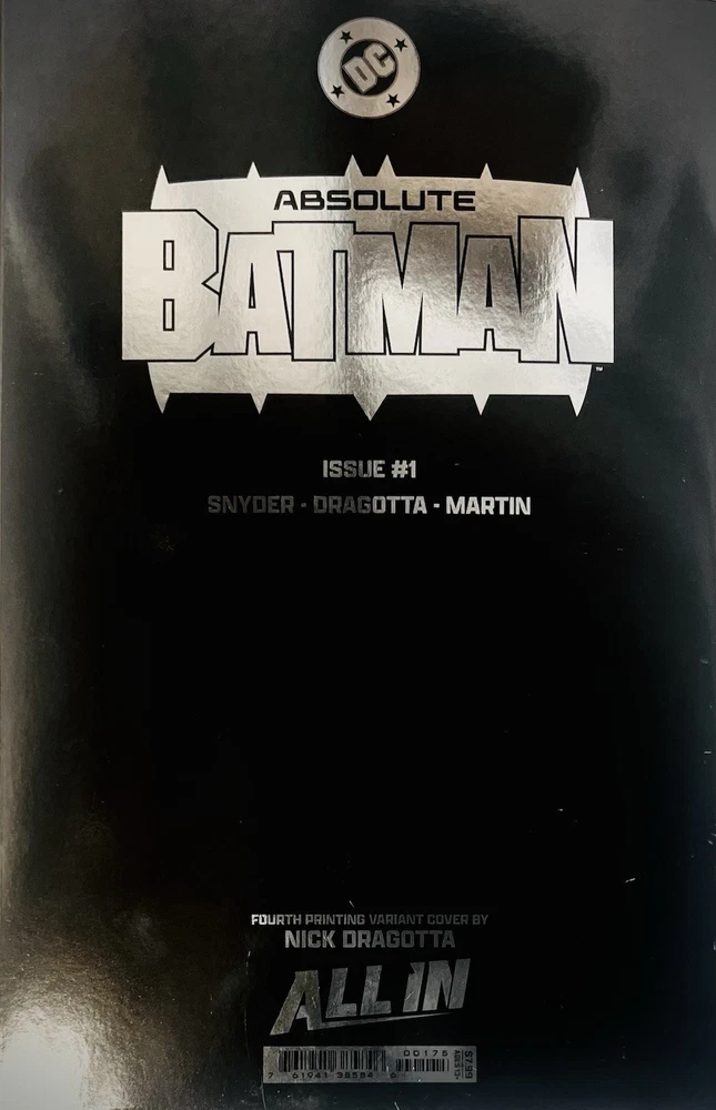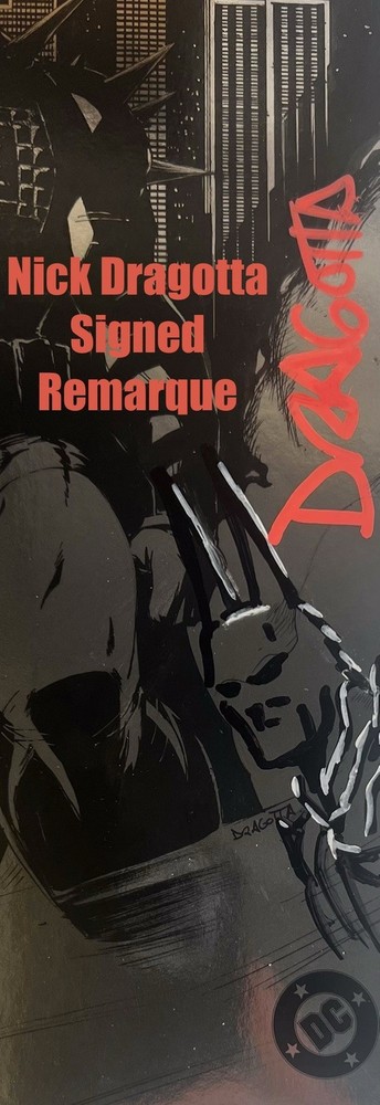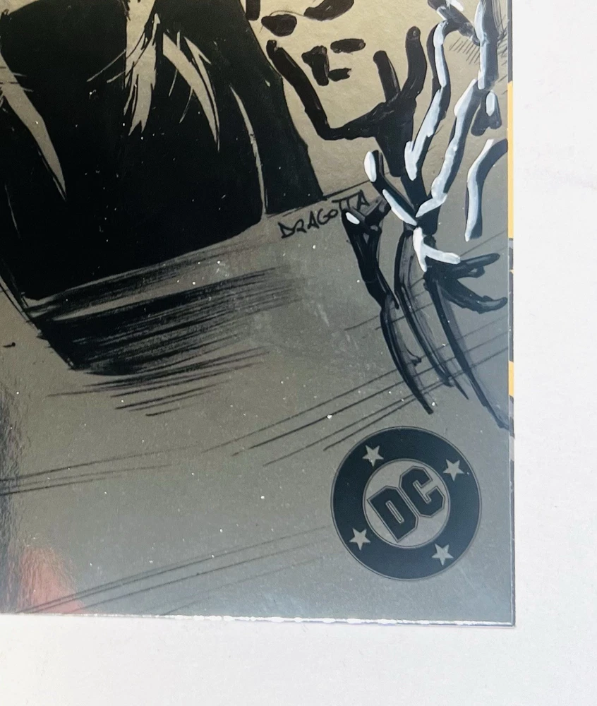 The product is a rare and highly collectible Absolute Batman 1 Black and White Foil 4th Printing comic book signed by artists Nick Dragotta and Scott Snyder. This variant cover features the first appearance of the character Bat-Man within the “Absolute” DC Universe and is a key issue in the series. With a modern age publication year of 2025, this comic book is a must-have for fans of superheroes and US Comics, especially those interested in unique foil editions and signed remarques by notable artists. The Absolute DC Universe is without question one of the best series in the entire history of DC Comics. Its popularity has only continued growing and by far and away the Absolute Batman series is the frontman. It broke several sales and publication records in 2024, including the following… • Best-Selling Comic of 2024: Issue #1 sold nearly 400,000 copies, becoming the highest-selling single-issue comic of the year. • High Sales Demand: Initial projections were for 100,000 copies, but the title exceeded expectations with 250,000 in early sales, leading to 10th-printing status by December 2025. • Massive Overall Sales: As of late 2025, Absolute Batman has sold approximately 3 million units, representing about 35% of the total Absolute Universe imprint's sales. • High-Volume Pulls: Issue #10 broke records with 26,526 pulls at comic shops, with projections reaching 30,000. • Popularity: The series reached #5 on the New York Times Best Seller list in September 2025. • It has been critically acclaimed and described as a "masterwork of action storytelling" and a "bold reinvention". High grade slabbed copies of first printings of Absolute Batman 1 are selling in upwards of $400 in some cases. Although this is a 4th printing, attributes such as being a foil cover, a virgin variant, a key issue with a first appearance of a character, and most importantly, having an rare and exclusive signed remarque from Nick Dragotta and signature from writer Scott Snyder just makes this a monumental item. Snyder’s brilliant reinvention of this fan favorite is absolutely one of the biggest draws that has made this series such a success, but Dragotta’s depiction of this character is truly what I believe has made this series explode in popularity. Having both of their signatures on this cover is not something you will find all too often, so don’t let this opportunity pass you by!