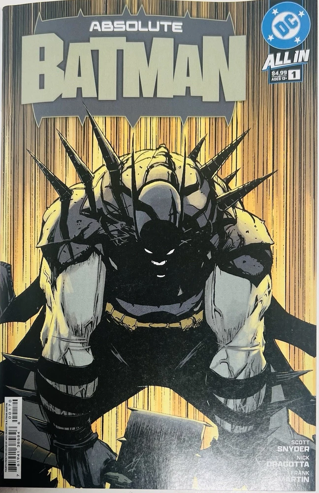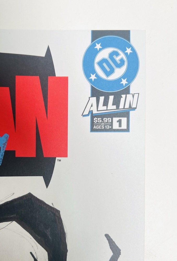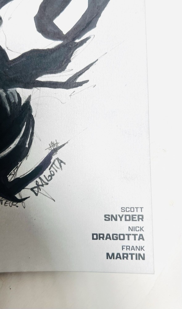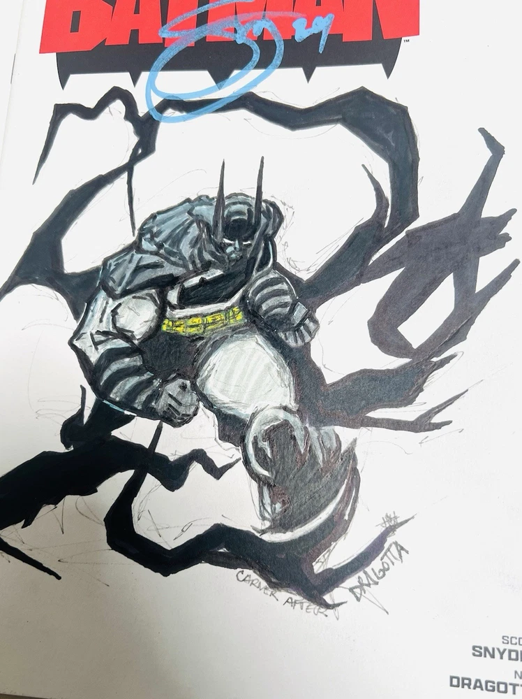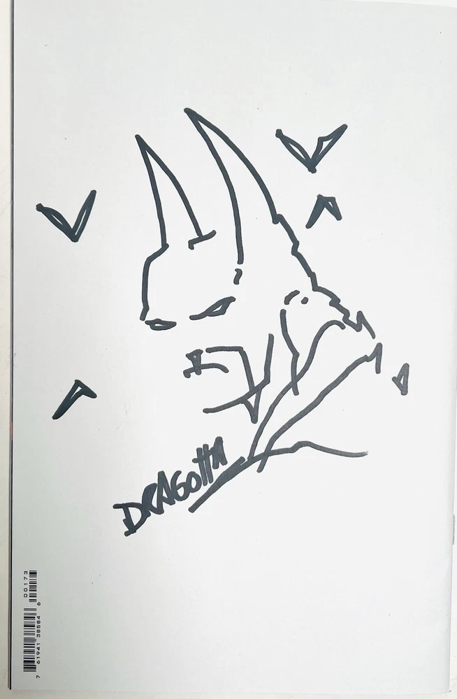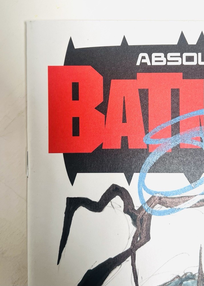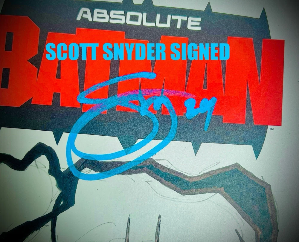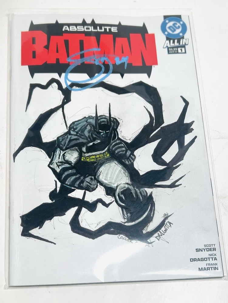 The product is a limited edition Absolute Batman #1 Sketch Cover variant, featuring dual remarques by Nick Dragotta (back cover) and an homage dedicated to Dragotta by myself on the front cover. Scott Snyder has also signed the front cover in blue paint marker. This blank sketch cover variant is a fourth printing from 2024, showcasing characters like Batman, Alfred Pennyworth, and the Joker in a color style. It is a unique and highly collectible item for fans of the DC Universe and Batman series. The Absolute Batman story arc is arguably the most compelling and popular comic run currently available in the entire comic industry. Prices have soared and remarques from Dragotta are very rare and in extremely high demand. Don’t miss your opportunity to get your hands on a very limited piece of comic history, as the “Absolute” series from DC is quickly becoming the next “Invincible,” not only from a collectibility standpoint, but as an incredible investment opportunity as well.