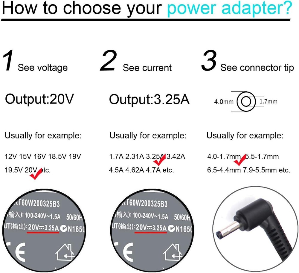 Specification: Condition: Brand New Input: AC 100-240V, 50-60Hz Output: 20V 3.25A 65W (Also compatible with 20 V 2.25A 45W ) Manufactured with the highest quality materials and include laptop safeguard features against incorrect voltage, short circuit, internal overheating. Built-in overload, over-voltage and short circuit protection Trusted seller of AC Adapters for over 25 years! We are based and operate from New York. Package includes AC Adapter Unit and AC Cord This product is good for the Model#s and Part# listed in our listing title ONLY. 100% New Components - never refurbished, recycled, or used Non-OEM but 100% Compatible - Guaranteed to meet the specifications of your original device All our products have CE and RoHS certificates. Delivery details 1. Items are generally shipped out within 24 hours after your payment has been cleared (Sat. & Sun. excluded.) 2. Orders from the United States will all be shipped out via USPS. The shipments usually takes 2-8 business days (Sunday excluded), if you need the item urgently, please select our Expedited (Priority) shipping option at an additional cost. 3. We ship to US & Canada ONLY. 4. All items will be shipped to buyer’s address. Please check your address before placing the order. Terms of sales Warranty And Return 1. We provide 30 days money back on non-defective, undamaged, unused and resalable products. Product is not eligible for refund after the 30-day refund period has expired. 2. Our warranty does not extend to any products that are physically damaged or that are not under normal operating conditions as a result of misuse or improper installation on the buyer/user's part. 3. For all returned products, Please contact us for the returning address. About us: Thank you for visiting our Ebay listing. Our company has over 25 years experience specializing in laptop parts and accessories. We take pride in working with school districts and Universities providing a turnkey solution to their computing needs. Our customers range from some of the largest enterprise and fortune 1000 companies, but our largest client-base are individual retail customers. We believe in providing a superior product, with a one year warranty as well as a technical support expertise unmatched in the online retail market. Buy from us and experience a level of quality and support that will keep you coming back to us for years to come. Review / Feedback Please leave Positive Feedback and 5 Star Ratings for us if you are satisfied with our products and service, and we will do the same for you. For any problem, please do not leave us negative feedback before email us, we sincerely hope every customer can provide a chance for us to solve the problem. Your Satisfaction is our highest priority. Please contact us if you have any questions, we will try our best to serve you. Contact us For full details about the warranty, please email or message us via Ebay. Please help us do not open the dispute or return request before emailing us. For any questions, feel free to contact us, we will reply you within 1 business day. (not including Public holiday or Sunday)