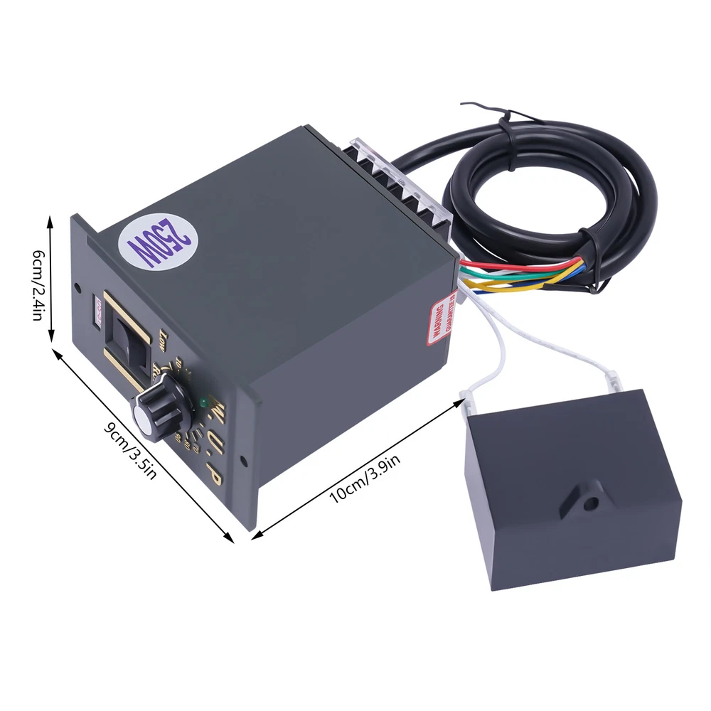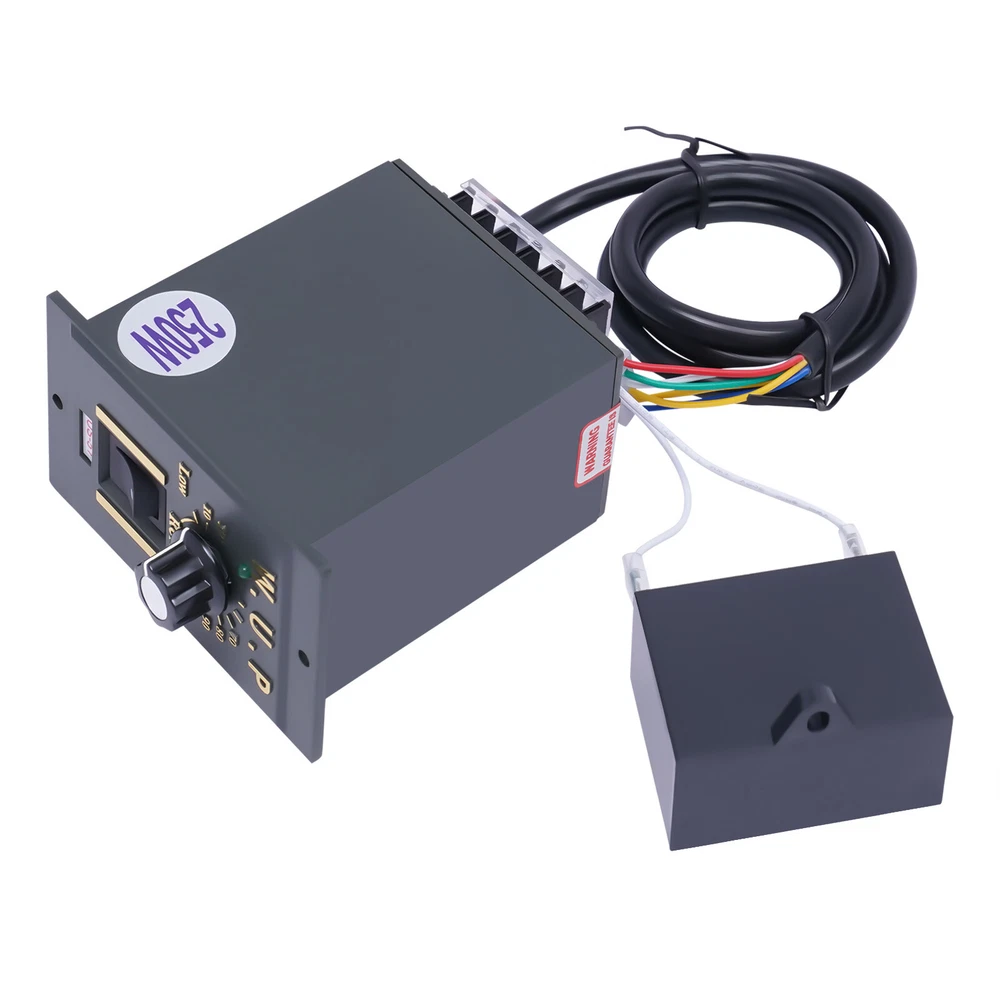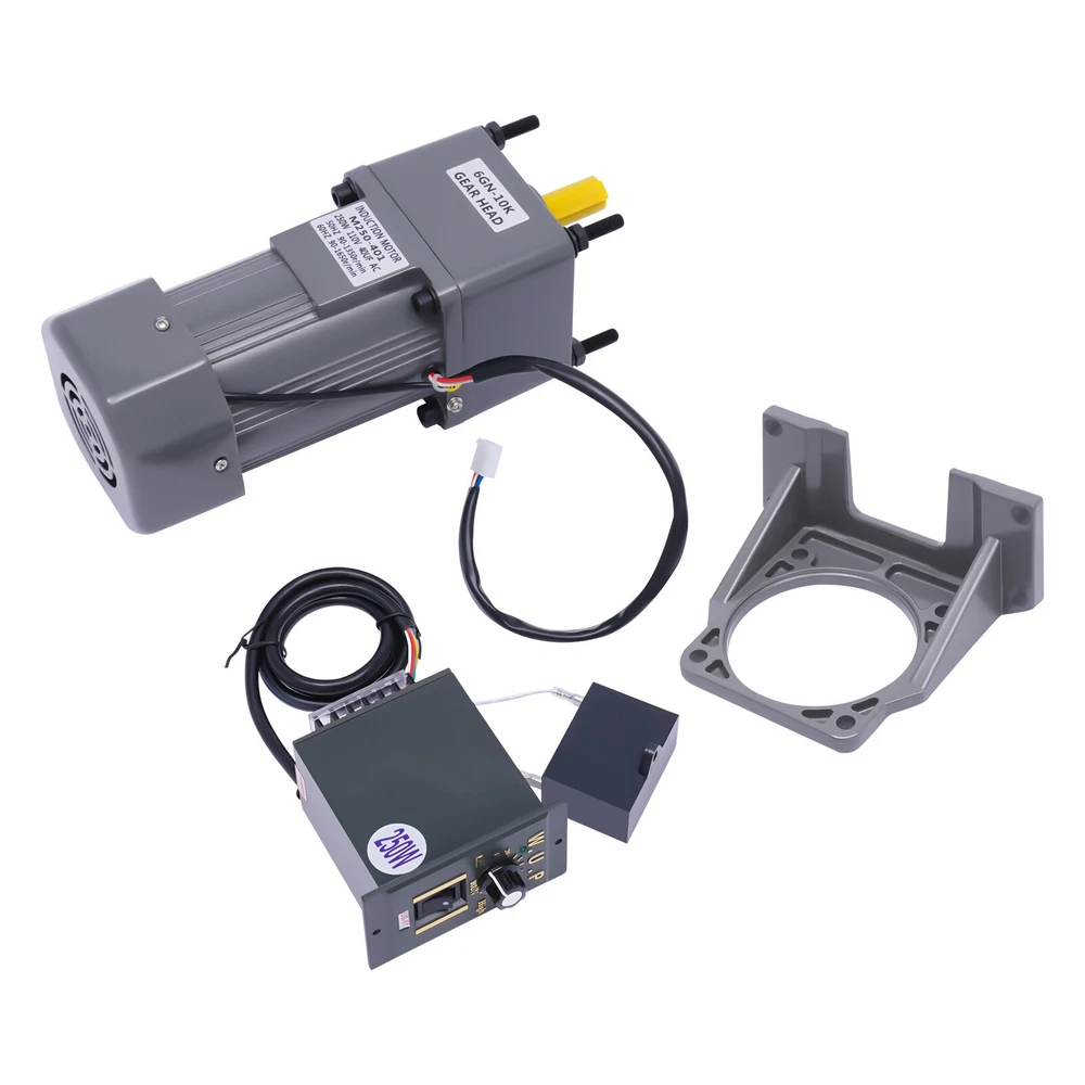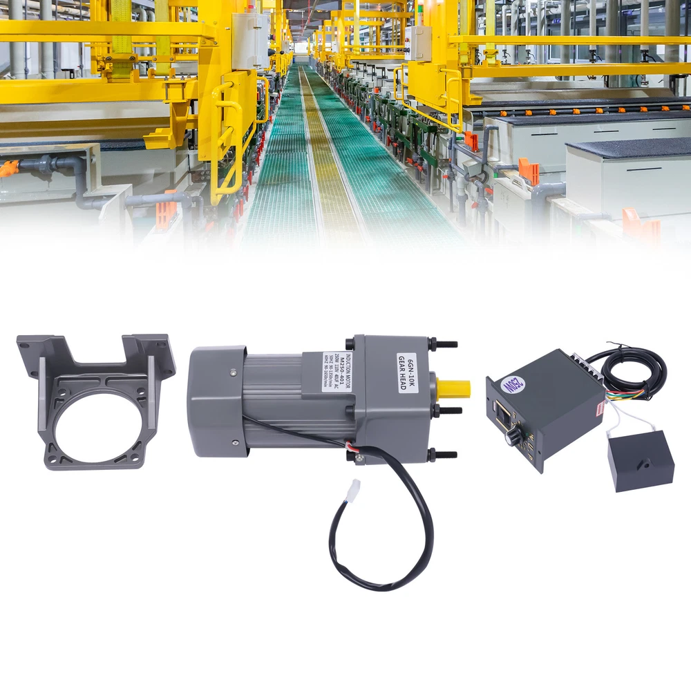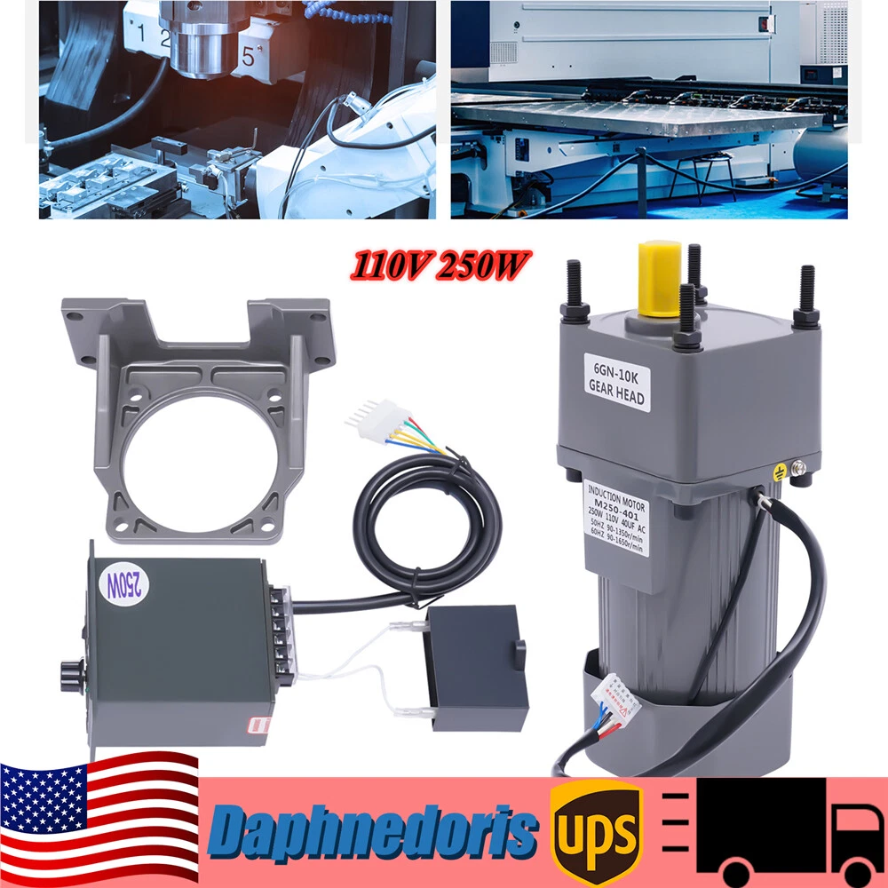 Specifications Material: Aluminum Alloy Gear Material: Steel Type: Single-Phase Coil Material: Copper Color: Grey Power: 250W Voltage: 110V 60Hz Engine Speed Ratio: 10K Torque: 8 N.m Output Speed Range: 0-135rpm (Infinitely Adjustable Speed 0%-100%) Upper Side Length of Bracket: 10.4cm/4.1inch Lower Side Length of Bracket: 16cm/6.3inch Bracket Width: 7.5cm/3inch Bracket Height: 12.5cm/4.9inch Governor Size: 9 * 6 * 10cm/3.5 * 2.4 * 3.9inch Motor Size: 19 * 10.4 * 8.4cm/7.5 * 4.1 * 3.3inch Dimension of Reduction Gearbox: 6.6 * 10.4 * 8.4cm/2.6 * 4.1 * 3.3inch Packing Size: 33*26*13cm/12.99*10.23*5.11in Gross Weight: 7.9kg/17.41lbs Net Weight: 7.3kg/16.09lbs Package Included 1 x Motor 1 x Reduction Gearbox 1 x Governor 1 x Bracket AC Gear Reduction Motor Electric+Variable Speed Control Reversible 110V 250W New Specifications Material: Aluminum Alloy Gear Material: Steel Type: Single-Phase Coil Material: Copper Color: Grey Power: 250W Voltage: 110V 60Hz Engine Speed Ratio: 10K Torque: 8 N.m Output Speed Range: 0-135rpm (Infinitely Adjustable Speed 0%-100%) Upper Side Length of Bracket: 10.4cm/4.1inch Lower Side Length of Bracket: 16cm/6.3inch Bracket Width: 7.5cm/3inch Bracket Height: 12.5cm/4.9inch Governor Size: 9 * 6 * 10cm/3.5 * 2.4 * 3.9inch Motor Size: 19 * 10.4 * 8.4cm/7.5 * 4.1 * 3.3inch Dimension of Reduction Gearbox: 6.6 * 10.4 * 8.4cm/2.6 * 4.1 * 3.3inch Packing Size: 33*26*13cm/12.99*10.23*5.11in Gross Weight: 7.9kg/17.41lbs Net Weight: 7.3kg/16.09lbs Description The product includes a complete set of accessories. In addition to the motor, it is also equipped with a bracket, a reducer, and a speed regulator for your convenience. This gear adjustable motor is primarily used to reduce the speed of a series of gears, thereby producing more power torque to improve working efficiency. This high-quality motor with excellent performance is suitable for various industries. Key Features Strong and Durable : The housing of this product is made of high-quality aluminum alloy, which is strong, durable, wear-resistant, anti-shock , high-temperature resistant, and can protect the internal parts well. Stable Operation : Both ends of the speed control motor rotor are fitted with ball bearings, which allow it to operate with low friction, reduce energy consumption and generate lower temperatures to ensure stable operation. High Efficiency : The stator and rotor are made of pure copper coils with good electrical conductivity, allowing for a constant high and stable power output. Adopting high-precision steel gears effectively increases the torque of the motor, which greatly enhances its working efficiency. Adjustable Speed: You can adjust the speed from 0% to 100% (0-135rpm)through the stepless speed knob on the governor according to the different situations to achieve the desired effect. Easy to Install: Since the motor and gearbox are already installed, you only need to plug the governor cable into the jack of the motor cable to quickly connect the motor and governor, which saves both time and labor. Forward and Reverse Rotatable: The governor is initially specified for forward rotation, but you can connect the wires on the CCW to the CW and then it can be converted to reverse rotation to suit your different needs. Good Heat Dissipation Performance: The motor has a built-in fan heatsink and cooling holes at the rear of the motor, providing good ventilation and heat dissipation to ensure stable performance and long service life. Low Noise: The speed control motor adopts high precision and high-speed bearings inside to bring you lower noise and create a quieter environment for you. Customer Service: We aim to provide quality products and services. If you have any problems, please feel free to contact us. We will reply and solve the problem for you as soon as possible. Details Indicator Light: The indicator light on the governor will be on when the power is on so that you can better understand the use status of the product. Motor Bracket: The bracket comes with triangular reinforced side plates for a stable structure, making the motor more firmly fixed without tilting or collapsing. Practical Governor: The governor is equipped with a threaded speed regulating knob, a speed scale panel, and a connector wiring description on the side, which is simple and easy to operate. It is also equipped with a one-button power switch, making it safer to use. Application This product is widely used in industrial assembly lines, intelligent equipment, animal husbandry machinery, printing machinery, textile machinery, instrumentation, food machinery, power transmission and transformation equipment, road gate machines, medical equipment, logistics equipment, security check facilities, financial equipment, new energy, industrial robots, and other industries. Package Included 1 x Motor 1 x Reduction Gearbox 1 x Governor 1 x Bracket Notes When the motor is working, it is normal for the temperature to rise to about 65℃/149℉. Please rest assured that it will not affect your use. Please do not knock the motor and the body of the governor. Please disconnect the power supply before changing the wire. Please allow the slight color difference caused by the shooting light and 1-3cm error due to manual measurement, and make sure you do not mind before you order. Payment Delivery details Terms of sales About us Contact us Payment We accept ebay payment 。 Fees such as import duties, taxes are not included in the item price or shipping costs. These charges are the buyer's responsibility. Delivery details Shipping: 2-9 working days to: USA Terms of sales We maintain high standards of excellence and strive for hundred percent customer satisfaction. Feedback is very important to us. We hope that you contact us immediately before you give neutral or negative feedback, so that we can address your concerns. It is impossible to address issues if we do not know about them! About us Your satis faction is our ultimate goal. We work ha