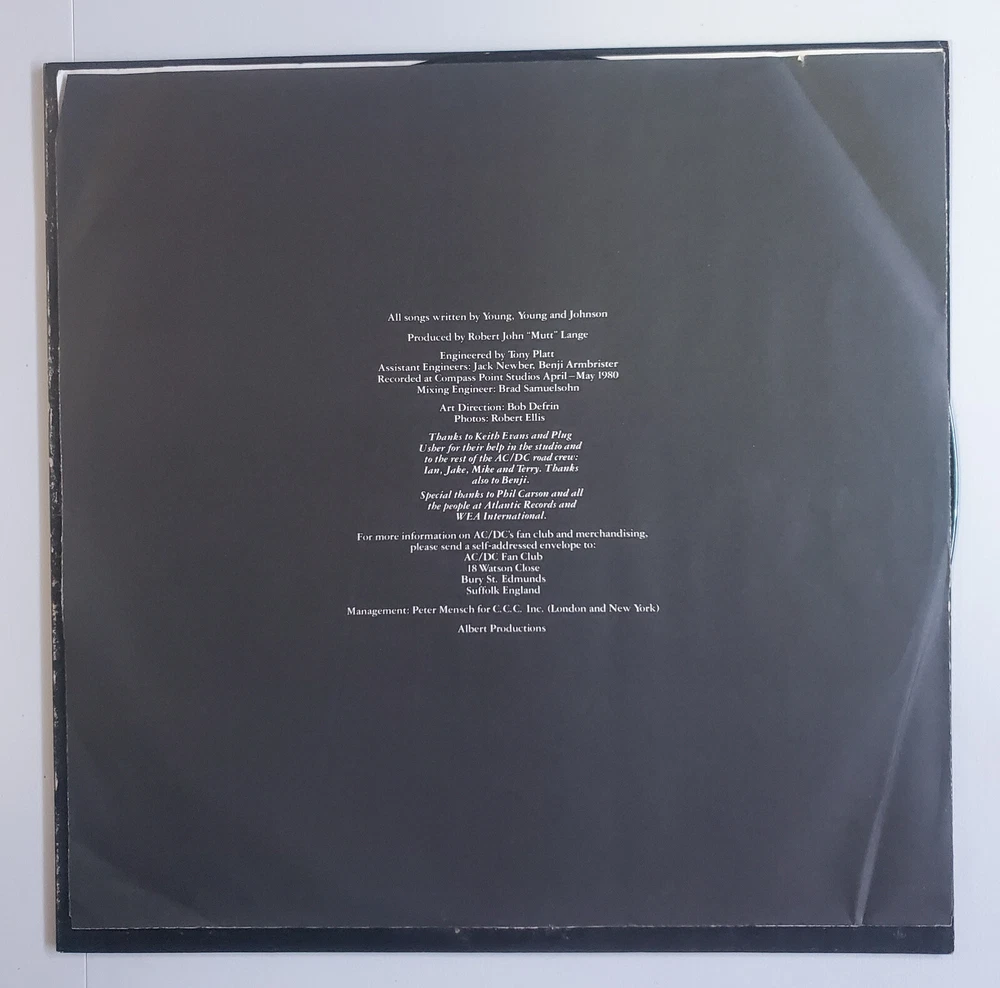 This AC/DC LP is a must-have for any 1980s rock fan. The record features 10 tracks of hard rock and is housed in a cardboard sleeve. The vinyl has been graded as Very Good (VG) and the sleeve is Good Plus (G+). The release title is "Back In Black" and it was produced by Atlantic Records in 1980. The record is 12" in size and is an original inner sleeve. The case type is a cardboard sleeve and the material is vinyl. The album is in English and was released in the United States. This item is perfect for collectors of vinyl records or fans of AC/DC.