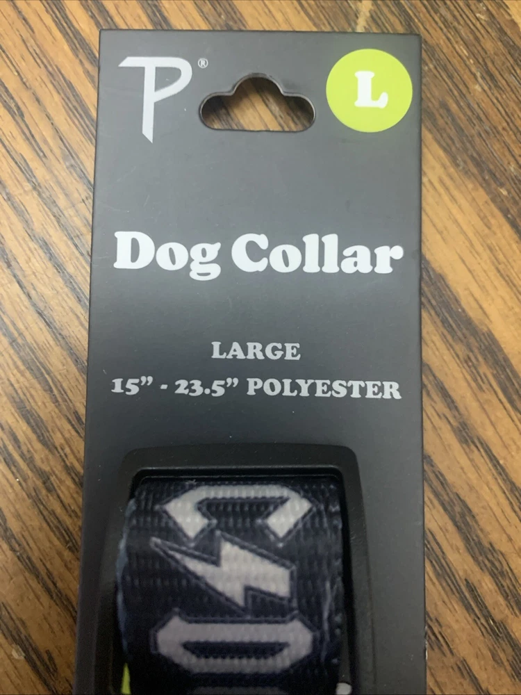 This AC/DC dog collar from Perri's Pet Products is perfect for any Labrador Retriever or other large dog. Made from durable polypropylene webbing, this collar features a quick release buckle and is adjustable for maximum comfort. The bold design is perfect for any pup who loves to show off their unique style. Not only is this collar stylish, but it is also practical. It comes with a warning label for California Prop 65 and is made to fit dogs with neck sizes between 15 and 23.5 inches. This collar is a great choice for any pet owner looking for a high-quality, heavy-duty collar that will stand up to their pup's playful antics.