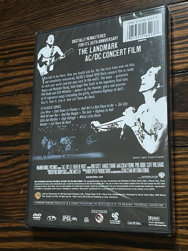 86 Books presents ... AC/DC: Let There Be Rock (DVD) (NEW) Author: AC/DC; Eric Dionysius, Eric Mistler Publisher: Studio Distribution Services Release Date: 2011-06-07 Media: dvd Qty Available: 5 Condition: New Notes: brand new in original shrinkwrap; NTSC Region 1 formatting for playback in the US & Canada; because we care that your order arrives in the condition stated, we have additionally sealed the case in bubblewrap for added protection during shipment Don't forget to check out other great deals in our eBay Store!!
