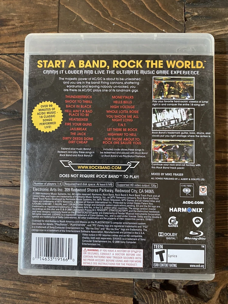 Rating: T-Teen Platform: Sony PlayStation 3 gtin13: 0014633191660 Genre: Action & Adventure Publisher: MTV Games Release Year: 2008 Game Name: AC/DC Live: Rock Band Track Pack UPC: 0014633191660