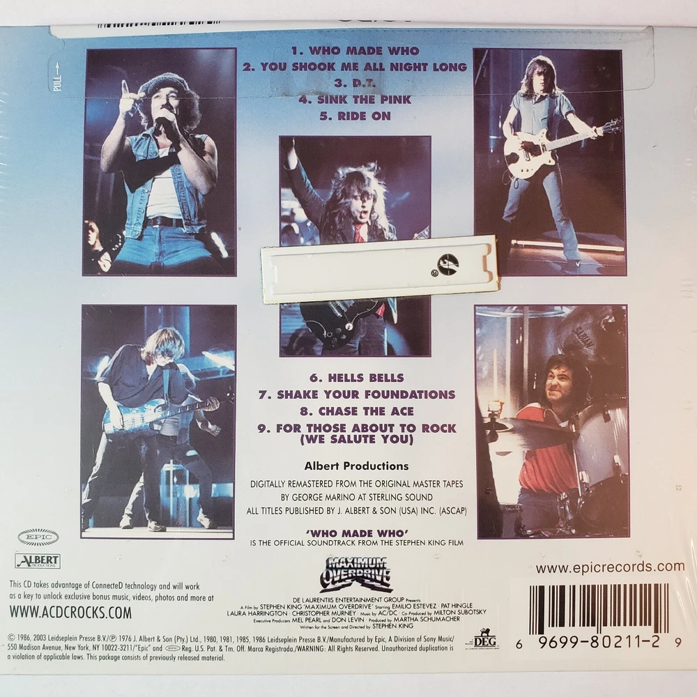 Color: Multicolor Type: Album UPC: 696998021129 Era: 1980s Case Type: Digipak Release Title: Who Made Who Style: 1980s, Hard Rock Artist: AC/DC Release Year: 2003 Record Label: Epic Records Duration: Album Inlay Condition: Near Mint (NM or M-) Case Condition: Excellent (EX) Format: CD Edition: Remastered Album Name: Who Made Who CD Grading: Excellent (EX) Brand: Sony Genre: Heavy Metal gtin13: 696998021129 Features: Deluxe Ed, Rmst, Digipak Country/Region of Manufacture: United States