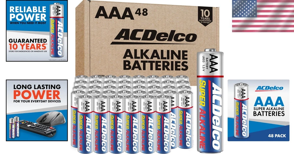 ACDelco 48-Pack AAA Batteries - Maximum Power Alkaline with 10-Year Shelf Life ‹ › ‹ › ‹ › ‹ › ‹ › ‹ › ‹ › ‹ › ACDelco 48-Pack AAA Batteries Maximum Power Alkaline with 10-Year Shelf Life Product Features: 48 AAA super alkaline batteries with 1.5 volts of long-lasting power. Ideal for everyday devices such as wireless mice, flashlights, clocks, remote controls, game controllers, digital cameras, computer mice, and electronic toys. Delivers reliable, consistent power for all your household needs. Impressive 10-year shelf life when stored in a cool, dry place. Environmentally friendly: contains no mercury or cadmium. Why Choose ACDelco AAA Batteries? When it comes to powering your essential devices, you need batteries that you can trust. Each ACDelco AAA Super Alkaline Battery is not only designed with advanced technology for optimal performance, but also features: Long-Lasting Power: Built to deliver consistent maximum power that you can rely on. Durability: The stainless steel pre-coating prevents leakage, ensuring a longer shelf life. Eco-Friendly Design: With a commitment to environmental safety, these batteries do not contain harmful materials. Perfect for All Your Needs This comprehensive pack of 48 AAA batteries is perfect for powering a wide variety of household gadgets. Whether you need batteries for your family’s toys, remote controls, or essential daily devices, ACDelco has you covered. Don't compromise on quality; choose ACDelco for all your battery needs and enjoy the peace of mind that comes with long-lasting, reliable power. Shipping Free & Fast Shipping - We offer free shipping to most of the USA with a normal delivery time of 3-7 days. However, due to the current situation, additional delivery time (up to 3 weeks) may be required for some items. Alternative Carriers - We may use alternative carriers (e.g. USPS, FedEx, UPS, etc.) to ensure your package arrives safely and on time. Due to the use of multiple carriers, we are unable to provide a tracking number automatically. Handling Time - Orders are processed and shipped within 1-2 business days of receiving cleared payment. Shipping Restrictions - Shipping to Alaska, Hawaii, Puerto Rico, Guam, and other US territories may incur shipping charges or delivery restrictions. Please contact us before ordering, or your order can be refunded/cancelled. State Restrictions - There may be restrictions based on your state of purchase. For example, certain items may not be shipped to California due to state regulations. Contact for Tracking Updates - If you require tracking updates or have any concerns about the delivery of your order, please feel free to contact us, and we will be happy to assist you. Return 30-Day Hassle-Free Returns - We want you to be completely satisfied with your purchase. If you are not, you can return the item within 30 days of receiving it for a full refund or exchange. Easy Return Process - To start a return, simply contact us and we will provide you with a prepaid return shipping label and detailed instructions. Restocking Fee - There are no restocking fees for returns. However, the buyer is responsible for return shipping costs if the return is not due to a seller's error. Refund Processing Time - Refunds will be processed within 5 business days of receiving the returned item in its original condition. Payment We accept all major credit cards, PayPal, and Apple Pay for your convenience. Your payment information is secure and encrypted to ensure a safe and seamless transaction. Please complete your payment within 3 days of purchase to avoid any delays in shipping. Feedback Your feedback is extremely important to us. We strive to provide the best products and customer service possible. If you are satisfied with your purchase, please take a moment to leave us a positive review. If you have any concerns or issues with your order, please contact us before leaving negative feedback. We are committed to resolving any problems and ensuring your satisfaction. Contact Us If you have any questions or concerns, please feel free to reach out to our customer support team. You can contact us through the eBay messaging system. We are available Monday to Friday, 9:00 am to 5:00 pm EST, and we will do our best to respond to your inquiry within 24 hours. Buy it now and enjoy a pleasant shopping experience! UPC: Not Set Unit Quantity: 48 Expiration Date: 10 Years Application: High Drain Devices,Low Drain Devices Brand: Unbranded Type: AAA Battery Size: AAA Chemical Composition: Alkaline Voltage: 1.5 V Amp Hours: 0.5 Ah MPN: Not Set Unit Type: lb Country/Region of Manufacture: Not Set Manufacturer Warranty: 10 Years