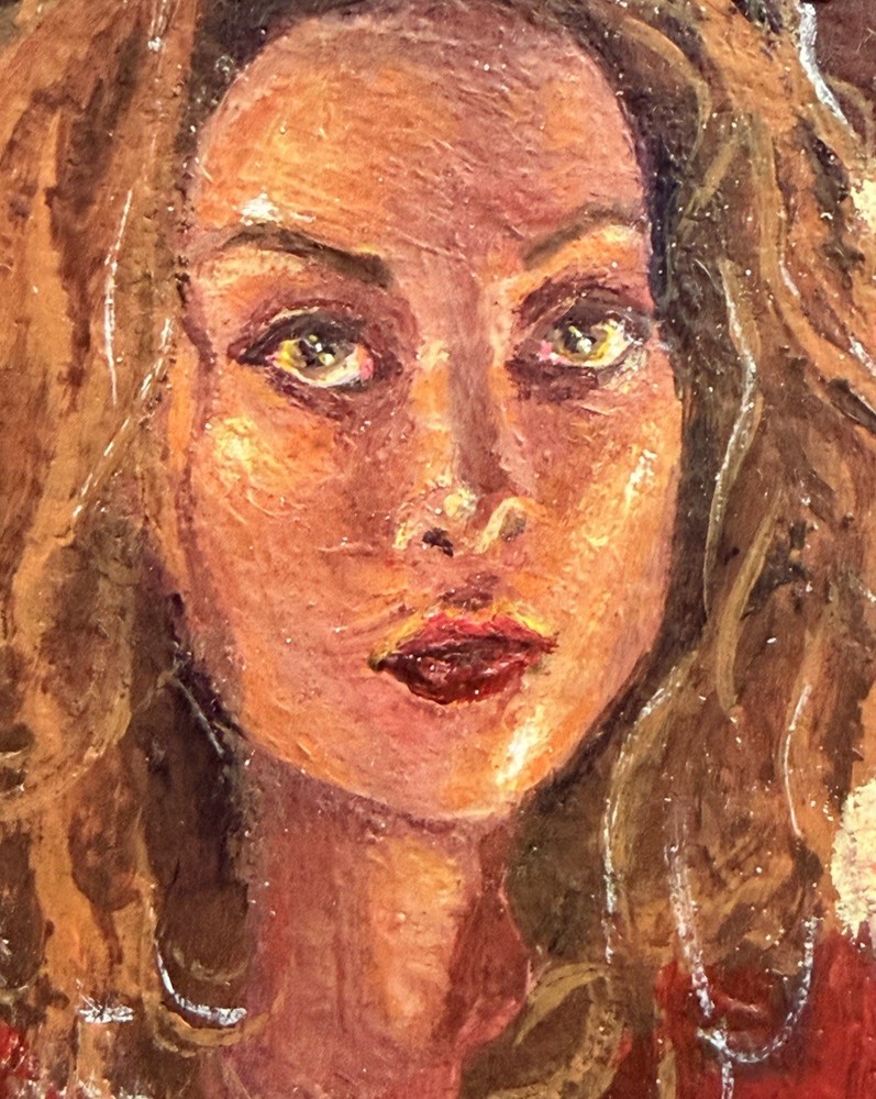 Portrait art of woman wearing red clothes between lit candles in the dark, high contrast contemporary realism. Original OOAK art by Emily Tomeu Lorenzo 3.5 x 2.5 inches (ACEO) Acrylic paint on 140 1b paper. Sealed with Acrylic DAS13 matte sealer. Number 2 out of 5 in "Quiet Companions" collection. Free Shipping. Shipped inside a plastic sleeve and packaged with care. Please check out my other art in my Ebay shop and don't forget to leave a review after purchase. If you want to join my email list, send me your email after purchase! Thank you for considering me! <3