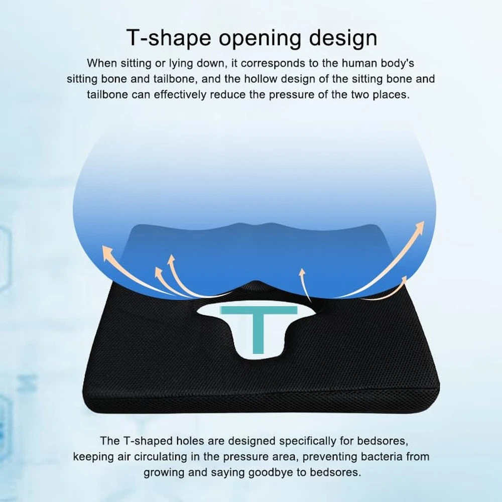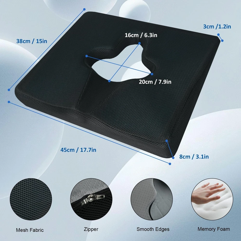 ACJRYO Bedsore Cushions for Butt, 18 X 15in Pillow Seat Cushion for Butt Positioning T Shaped Opening Triangular Slope Design for Sleeping Position Wedge with Removable Jacket Product Details Color: Black Brand: ACJRYO MPN: Bedsore cushions UPC: Does not apply EAN: Does not apply Brand: ACJRYO Special Feature: Lightweight, Breathable, Compressible Color: Black Size: 38x45x8cm Fill Material: Polyester Brand: ACJRYO Special Feature: Lightweight, Breathable, Compressible Color: Black Size: 38x45x8cm Fill Material: Polyester Shape: Square Age Range (Description): Adult Recommended Uses For Product: Sitting Use for: Hip Material: Memory Foam Item Firmness Description: Soft Product Care Instructions: Machine Wash Number of Pieces: 1 Pattern: Solid Item Weight: 2 Pounds Material Feature: Breathable Variety: Seat Cushion Fabric Type: Memory Foam Model Name: Bedsore cushions Specific Uses For Product: Other Manufacturer: ACJRYO Product Dimensions: 18"L x 15"W Unit Count: 1.0 Count Item Weight: 2 pounds Item model number: Bedsore cushions Date First Available: September 1, 2024 Durable and excellent-quality: Our bed sore cushions are made of ultra-high-quality memory foam and cooling gel, ensuring long-lasting durability. Please handle with care to prevent any damage. Ergonomic Design for Pain Relief: With an ergonomic design, our cushions effectively target and alleviate pain and tension in key areas such as the lower back, coccyx, hips, spine, and sit bones. Experience superior support and comfort throughout the day. Versatile and Portable: Whether you're at home, in the office, or on the go, our cushions seamlessly fit onto any bed, chair, bench, car seat, airplane seat, or wheelchair. Enhance your comfort and support in any setting. Priority on Comfort and Well-being: Our cushions are specifically designed to minimize contact with sensitive or painful areas, reducing the risk of bedsores. Prioritizing your comfort and well-being is our top priority. Easy Maintenance: For added convenience, the removable black cover of our cushions is machine washable. Effortlessly clean and maintain your cushions for long-term use.