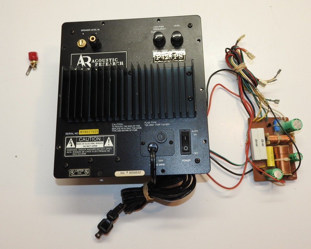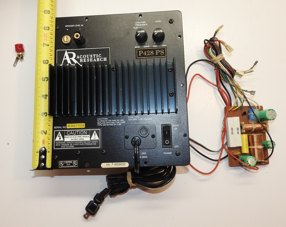 For sale is an excellent working Acoustic Research P428PS amplifier in great condition however it has a broken "speaker level in" terminal but a replacement is included as seen in pics, also includes crossover in excellent condition, please see pics. No shipping to Alaska, Hawaii and Puerto Rico. You will receive everything you see in the pictures, if it is not pictured then it's not included. All items have a hidden invisible security mark. Please view pictures and ask any questions you might have. Have a nice day! B