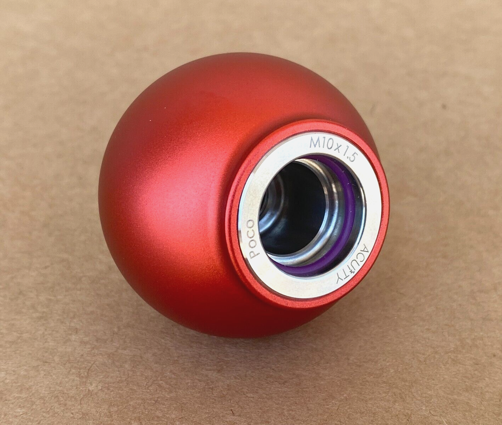 ACUITY POCO Low-Profile Shift Knob RED Part Number: 1925-RD The Big Deal about the POCO Shift Knob In recent years, countersunk knobs have become a popular way to achieve shorter shift throws and reduced knob height without modifying the shifter itself. A core problem with most countersunk knobs is that they don't fit well to the shift boot, leaving the shift boot to sag and the shift lever exposed. ACUiTY's POCO knob is the answer with its low height and built-in shift boot collar, the combination of which permits a very low shift knob height combined with a clean fitting shift boot. What to Expect The POCO sits low, much lower than most stock and aftermarket knobs. Most knobs sit around 25mm (1 inch) or higher above the top of the actual shift lever. The POCO sits only 3-4mm taller than the top of the shift lever when mounted. The POCO's low profile means shifts will feel shorter and firmer with throws typically 5%-10% shorter than compared to non-countersunk knobs. The POCO is one of the most well-integrated countersunk knobs available with its built-in shift boot collar that easily clips into the knob for that perfect finished appearance. How it Works The POCO's boot collar is affixed to the shift boot using a low-profile cable tie (3 are supplied with each kit); the knob threads down on the shift lever until it stops. Once both parts are installed, the shift boot collar clips into the shift knob and installation is complete. Materials and Finish Each POCO is turned from 6061-T6 aluminum and receives a tasteful, satin anodized finish. An internal elastomer ring provides the locking feature, just like our very popular 1924 shift boot collars. All lettering is laser-etched for durability. Sits lower than most stock and aftermarket knobs, only 3-4mm above the top of the threaded shift lever Typically offers 5%-10% less throw than with a stock knob Built-in shift boot collar tastefully connects the shift boot to the knob and allows easy removal or adjustment Satin anodized finish 6061-T6 construction Weighs 185 Grams Confirmed To Fit These Vehicles: 2002-2005 HONDA Civic (7th Gen, all trims, MT only) 2002-2006 ACURA RSX and RSX-S (all trims with MT, including DC5 Integra) 2002-2006 HONDA CR-V (2nd Gen, MT only) 2003-2007 HONDA Accord (7th Gen, MT only) 2003-2011 HONDA Element (MT only) 2004-2008 ACURA TSX (1st Gen, MT only) 2008-2012 HONDA Accord (8th Gen, K-Series only, MT only) 2011-2016 HONDA CRZ (MT only) 2009-2011 HONDA Civic (8th Gen, MT only) 2009-2014 HONDA Fit (2nd Gen, MT only) 2009-2014 ACURA TSX (2nd Gen, MT only) 2012-2015 HONDA Civic Si (9th Gen, all trims, MT only) 2012-2017 HONDA Accord (9th Gen, MT only) 2015-2020 HONDA Fit/Jazz (34d Gen, MT only) 2015-2017 HONDA Civic Type R (9th Gen) 2016+ HONDA Civic (10th Gen, all trims, MT only) 2018+ HONDA Accord (10th Gen, MT only) WILL NOT Fit These Vehicles: Honda S2000 (all years) WILL NOT Fit These Vehicles without modification to shifter (two small steel bumps must be filed off the shift lever to clear the collar portion of the POCO): 2003-2008 CL7R Accord (all trims with mt)