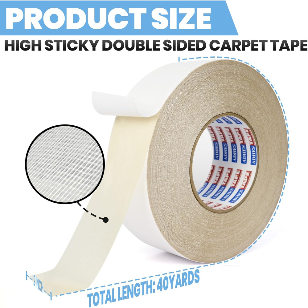 ADHES Double Sided Carpet Tape for Area Rugs – 2 Inch X 40 Yards, Heavy Duty Adhesive, Residue-Free, Rug Gripper for Hardwood Floors, Tile, and Carpeted Surfaces – Easy to Apply Upgrade your daily routine with ADHES Double Sided Carpet Tape for Area Rugs – 2 Inch X 40 Yards, Heavy Duty Adhesive, Residue-Free, Rug Gripper for Hardwood Floors, Tile, and Carpeted Surfaces – Easy to Apply — premium build for reliable performance and long-lasting value. Enjoy fast handling, friendly support, and a risk-free purchase backed by easy returns. Trusted seller with excellent feedback Popular item — often sells out quickly 30-day returns, no questions asked Key Benefits Feel the quality: durable materials and clean finish Save time: quick setup and easy everyday use Peace of mind: hassle-free support via eBay Messages Smart value: excellent price–performance for home, office, hobby, or professional use Item Specifics Item model number S202-2-40-WT-1ROLL Unit Count 120.0 Feet Number of Items 1 Compatible Material Wood, Tiles, Vinyl, Marble, Carpet Color White Water Resistance Level Not Water Resistant Adhesive Location both_sides Item Weight 1.74 pounds Adhesive Format Tape Item Resistance water_resistant Size 2in x 40yds Adhesive Side Count 2 Package Dimensions 6.5 x 6.38 x 1.93 inches Foil Thickness 8.66 Mils Description Strong Adhesion but Residue-Free: ADHES double sided carpet tape offers an exceptional grip to keep carpets and rugs securely in place. Despite its strong adhesive power, it’s safe and residue-free on surfaces, including delicate wood and laminate flooring. No need to worry about floor damage during removal. Works on Any Surface: This versatile rug tape is compatible with a wide range of indoor surfaces such as wood, tiles, vinyl, marble, and carpet. Ideal for installing carpets, securing rugs, stair treads, pads, mats, runners, repairs, home DIY projects, crafts, and mounting tasks. For optimal results, test on a small area before full application. Keeps Your Family Safe: Proven to be a reliable household protector, this double sided sticky tape prevents rugs and carpets from slipping, ensuring the safety of elderly family members, children, and pets as they move and play around the home. Easy to Install and Remove: Designed for hassle-free application, simply cut the desired length and stick it in place. With its optimal thickness, it’s easy to reposition or remove without leaving damage. Enjoy the flexibility to relocate your carpets or rugs whenever you like. Multi-Purpose and Durable: Whether for securing rugs in high-traffic areas or completing a creative DIY project, ADHES carpet tape for area rugs delivers long-lasting performance. Each roll offers generous coverage, ensuring you have enough for all your household or professional needs. Product description MULTI-PURPOSE USES Compare with similar items Add to Cart Add to Cart Add to Cart Add to Cart Add to Cart Customer Reviews 4.2 out of 5 stars 178 4.2 out of 5 stars 178 4.2 out of 5 stars 178 4.2 out of 5 stars 178 4.3 out of 5 stars 664 4.3 out of 5 stars 664 Price $11.59 $ 11 . 59 $20.99 $ 20 . 99 $13.49 $ 13 . 49 $16.79 $ 16 . 79 $8.99 $ 8 . 99 — Width x Length 2 Inch x 30 Yards 2 Inch x 30 Yards 2 Inch x 30 Yards 2 Inch x 30 Yards 2 Inch x 10 Yards 4 Inch x 10 Yards Residue-Free ✔ ✔ ✔ ✔ ✔ ✔ Heavy Duty Adhesive ✔ ✔ ✔ ✔ ✔ ✔ Easy to Install ✔ ✔ ✔ ✔ ✔ ✔ Number of Items 1 2 1 2 1 1 6.38 inches x 6.5 inches x 1.93 inches. Weight: 1.74 lb Package Includes 1× ADHES Double Sided Carpet Tape for Area Rugs – 2 Inch X 40 Yards, Heavy Duty Adhesive, Residue-Free, Rug Gripper for Hardwood Floors, Tile, and Carpeted Surfaces – Easy to Apply User manual (if included) Invoice by email (VAT shown on request) Shipping & Returns Fast handling and dispatch from our warehouse Tracking provided for parcel shipments 30-day returns according to eBay listing settings Why Buy From Us? Top-rated customer experience Secure checkout through eBay Reliable packaging — arrives ready to use Limited availability on popular variants Don’t wait — click Buy It Now to secure your ADHES Double Sided Carpet Tape for Area Rugs – 2 Inch X 40 Yards, Heavy Duty Adhesive, Residue-Free, Rug Gripper for Hardwood Floors, Tile, and Carpeted Surfaces – Easy to Apply today.