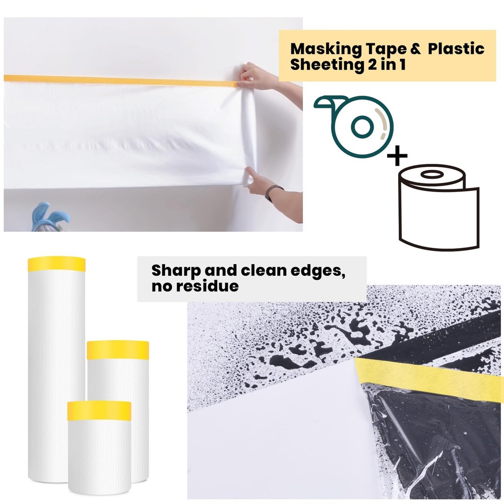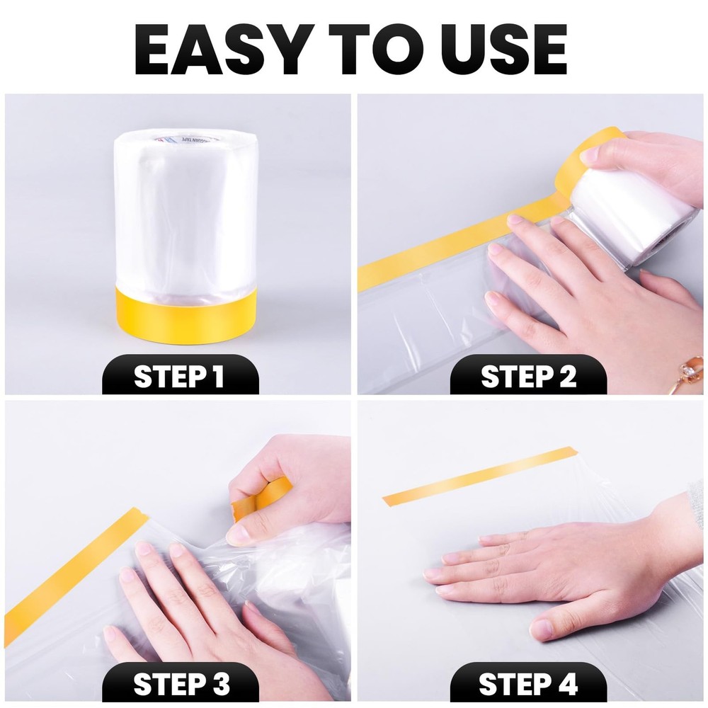 This pre-taped masking film is a game-changer for any painting or renovation project! The adhesive edge makes application super easy, and the high-density material stays put without tearing or scratching. It’s perfect for protecting furniture, floors, and even cars from dust, paint, and water. Lightweight yet durable, it delivers excellent coverage and peels off cleanly when done. No more messy drop cloths—this film does the job effortlessly! Highly recommend for DIYers and pros alike.
