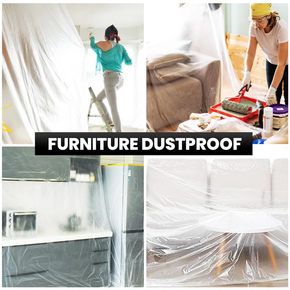 High density tape and drape is lightweight and tear resistant, and not easy to scratch, with premium quality dust-proof effect. Lightweight protective sheeting ideal for car automotive paint, household appliance, house decoration, furniture protection and drop cloth protection from dust and paint, water. 【Surface Protection】The pre-Taped Masking Film is the transparent tear-resistant paintable plastic overspray protective masking film, and can cover your furniture, carpet, floor, sofa, table, bed, closet, car when you renovate your house or travel. It can prevent household appliances and furniture from dust and paint during home decoration or painting. Can also be used as car dust cover, car paint spray paint protective film. 【Drop Down Design】Roll design for quick and convenient unfold the film and cover various small appliance. You can cut plastic tape of different lengths according to different items. It is perfect protector cover for moving supplies, packing supplies. 【Tough and Tear Resistance】Made of high quality material, waterproof, durable. Easy to unpack and spread out. The film is lightweight and highly resistant to tearing, ensuring complete surface protection by attracting dust and debris. 【Easy To Use】You just stick the tape side in right place, unravel the plastic film, it will slowly spread the plastic film to cover the object. Light weight, easy to roll out, paste and tear. Single person can do it and save you time, money, and effort. 【Masking Film Size】: Includes 3 rolls of protective film, each roll of 22" W x 33 Yds Long.