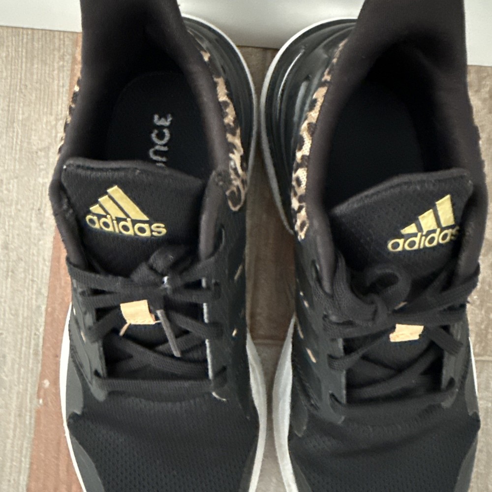 The ADIDAS Bounce Girl Athletic Sneakers in size Youth 2 are a stylish and comfortable option for young girls who love to be active. These black sneakers with animal print accents feature the iconic Adidas logo, making them a trendy choice for everyday wear. The Bounce product line from Adidas ensures a cushioned and supportive experience for young athletes, whether they're playing sports or just hanging out. These sneakers are a great addition to any girl's shoe collection. Excellent condition. Washed prior listing.