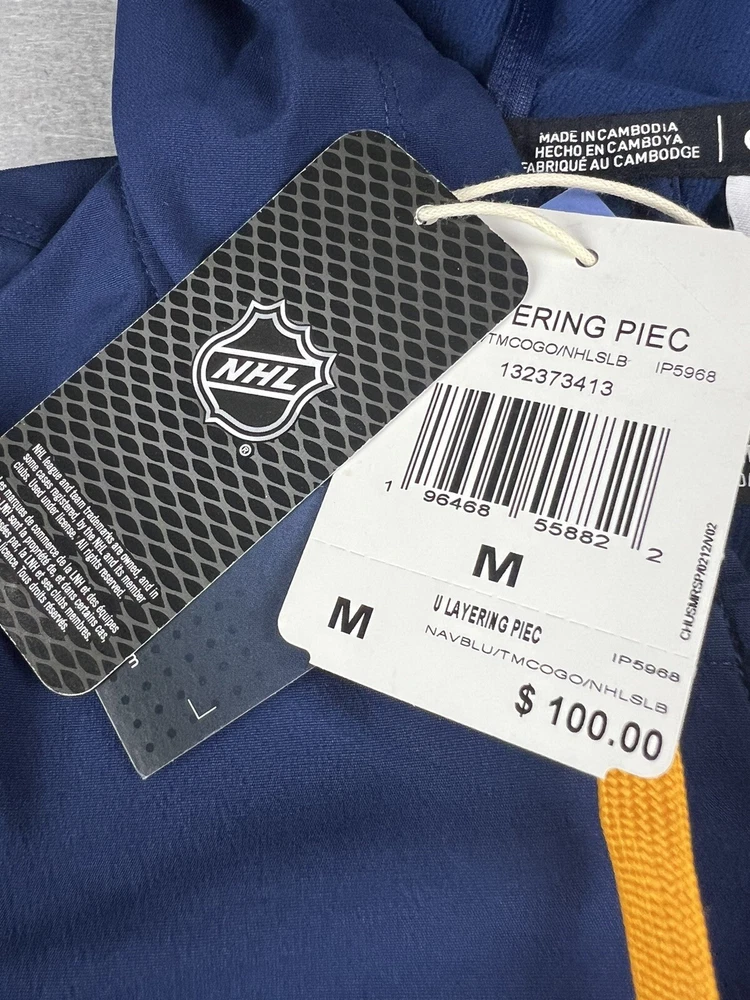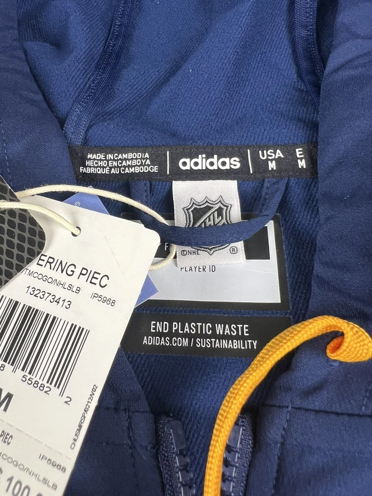 UPC:Does not applygtin13:Does not applyColor:BluePre & Post Season:Regular SeasonCountry/Region of Manufacture:CambodiaGender:MenSport:HockeyOfficially Licensed:YesTeam:St. Louis BluesLeague:National Hockey League (NHL)Product:JacketSize:MBrand:adidas
