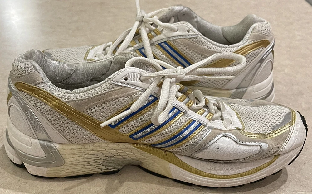 ADIDAS Women's UCLA BRUINS White Gold And Blue Geofit Sneakers Shoes Size 7. These shoes are preowned and show some signs of wear, they are a rare shoe and still look good given the age. Please see ALL photos for a better idea on condition and any details to the shoe.