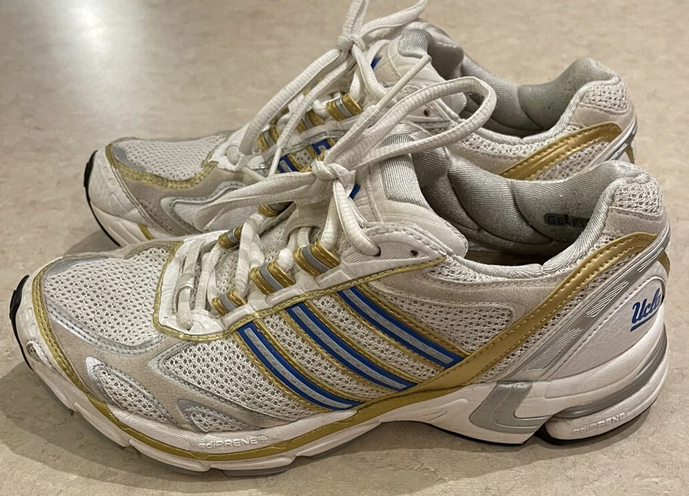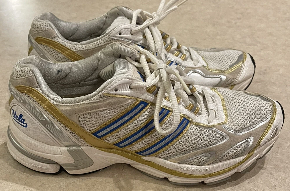 Accents: Mesh Vintage: No Year Manufactured: 2009 Style: Sneaker Model: Adidas UCLA Theme: UCLA Bruins Type: Athletic Performance/Activity: Running & Jogging Features: Geofit, Adiprene, Running Shoes Pattern: Solid Country/Region of Manufacture: China Closure: Lace Up Product Line: adidas Gold US Shoe Size: 7 Customized: Yes Department: Women Character: UCLA Bruins EU Shoe Size: 38.5 UK Shoe Size: 5.5 Brand: adidas Color: Multicolor Release Year: 2009