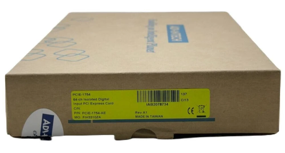 ADVANTECH PCIE-1754-AE 64-CH ISOLATED DIGITAL INPUT PCIE CARD IFS: BOX 6D The Advantech PCIE-1752, PCIE-1754 and PCIE-1756 series products offer 64 isolated digital input and output channels with 2,500 VDC isolation protection. They feature a wide input range (10 ~ 30 VDC), wide output range (5 ~ 40 VDC) and high sink current (500mA max./channel) can make PCIE-1752/1754/1756 series products easily used in industrial automation control systems. With the help of the latest Advantech driver - DAQNavi, users can perform the configuration and setting easily and efficiently in the programming. Wide input range (10 ~ 30 VDC) Either +/- voltage input for DI by group High over-voltage protection (70 VDC) High-voltage isolation (2,500 VDC) Output status read-back Keeps the output settings and values after system hot reset Channel-freeze function A brand-new, unused, unopened, undamaged item in its original packaging (where packaging is applicable). Packaging should be the same as what is found in a retail store,unless the item is handmade or was packaged by the manufacturer in non-retail packaging, such as an unprinted box or plastic bag WE DO DIS MENTAL MOST USED MACHINE FOR RESELL Item will be ship via economy shipping, delivery take about 2-5 working days to most countries or urgent shipment via FEDEX, UPS,OR DHL +++Please read the Terms & Condition before purchase+++ ACCESSORIES Any accessories, manuals, cable and etc that are not in the picture listing or mention, it is NOT INCLUDED. INTERNATIONAL BUYER Import duties, taxes, and charges are not included in the item price or shipping cost. These charges are the buyer's responsibility. Please check with your country's customs office to determine what these additional costs will be prior to bidding or buying WARRANTY Our warranty is valid for 14 days after initial receipt of item. PAYMENT TERMS PAYPAL, WIRE TRANSFER TT or Contact Us RETURN POLICY -For item condition not as described, defective. Please report to us for replacement or refund within 14 days of receipt. -Returns must be in their original condition and include all shipped accessories. Shipping fees will NOT be credited for returns and ALL RETURN SHIPPING COSTS ARE THE RESPONSIBILITY OF BUYER. - All items will ship with our warranty label. If any stickers have been removed or tampered, your refund will be canceled.