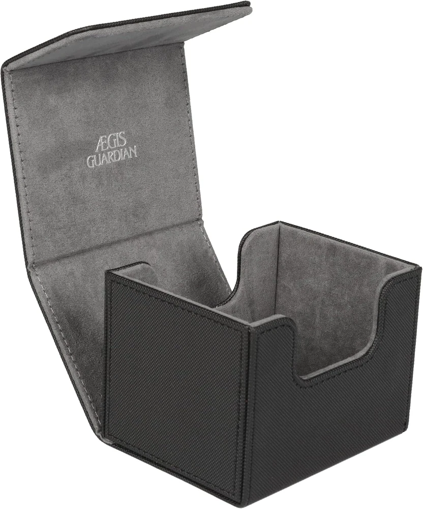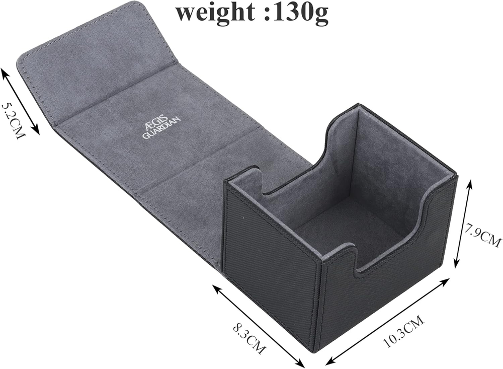 Leather Capacity - Commander deck box can hold 100+ double-sleeved cards, 150+ single- sleeved cards, 200 + unsleeved cards, Due to the thickness of sleeves, the actual number of cards that can be holded varies. Exquisite Workmanship - The card deck box for MTG outer skin is made of mesh pattern, which is non-slip and wear-resistant; each edge is precisely sewn, the margins are symmetrical, uniform and meticulous; the entire chess and card storage box is neatly connected and seamlessly connected. Powerful Magnet - Tight Stitching 4 magnets keep the card holder secure during transportation. Even when fully loaded and turned upside down, the card deck case stays shut tight. Groove Design - The commander deck box is designed with grooves on the front and back sides, which is convenient for picking and placing. Versatile - Our mtg deck box is designed to fit a variety of cards. Compatible with magic the gathering, yugioh! Product Description ÆGIS GUARDIAN DECK BOX Made for gamers super large capacity convenient card deck box Features Strong Magnetic Closure Two high-strength magnets keep the card holder secure during transportation. Even when fully loaded and turned upside down, the deck box stays shut tight. Groove design, easy to pick and place. Double layer reinforcement, exquisite workmanship Three-dimensional paste, high fit. Neat docking, seamless link.