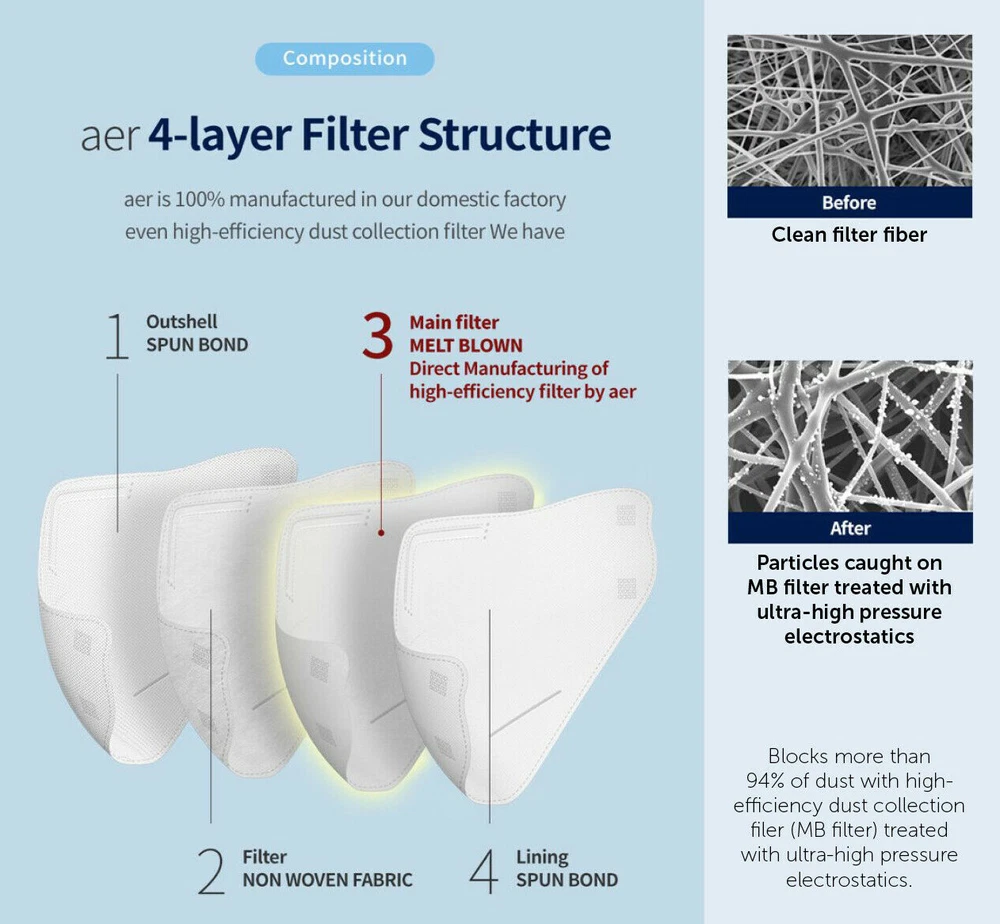 AER KF94 Korean Face Mask Made in Korea Medical Respirators Covers Kids & Adults