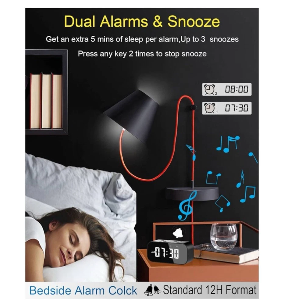 AFK Alarm Clock for Bedroom/Office,Digital Clock with Bluetooth Speaker,Small...