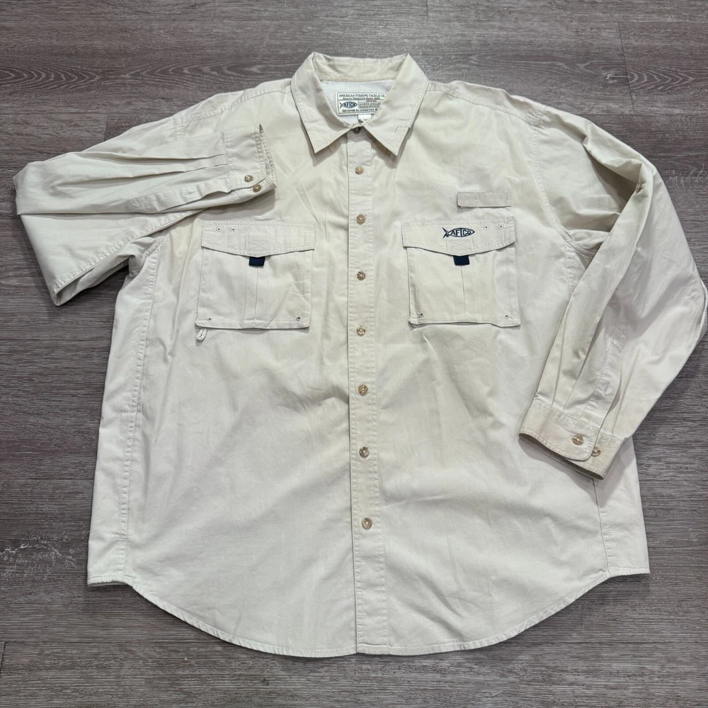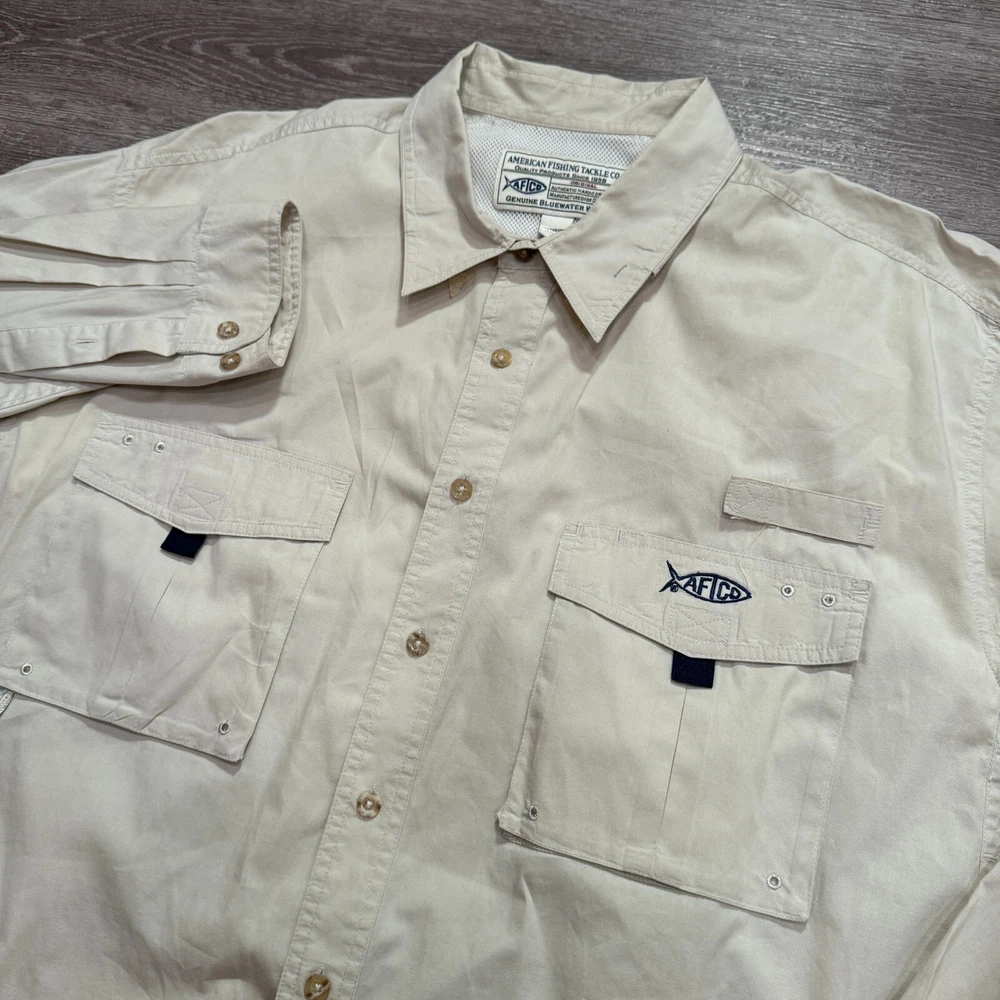 AFTCO Shirt Mens XL Beige Performance Vented Fishing Lightweight Outdoor Hike