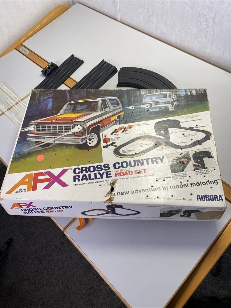 This afx aurora race track pieces come will 11 track pieces total. 7 curved pieces and 4 straight pieces. Also included is the bridge lifts and the side wall pieces. All these were left over from a box that I bought for the cars themselves. The last picture is a reference of what set it came from, and the box is not included. If you have any questions, please feel free to let me know. Thank you .