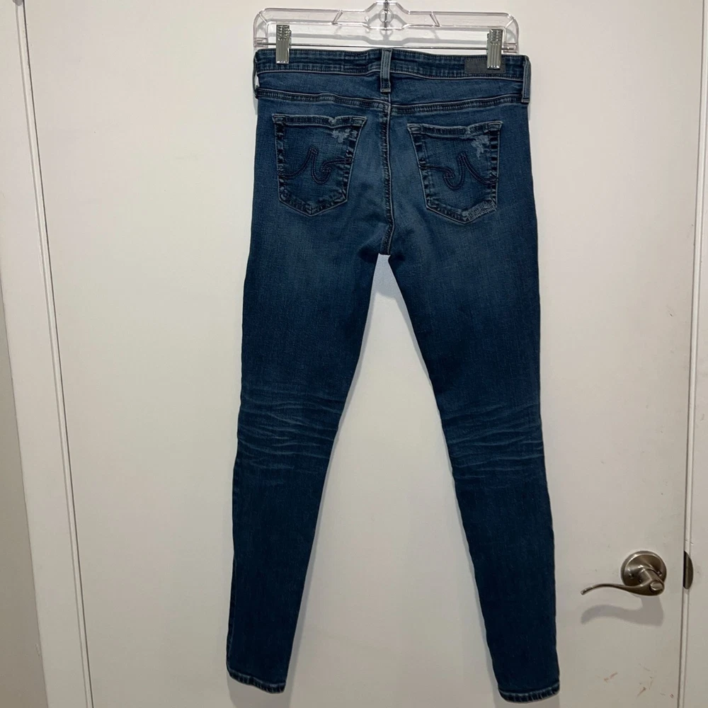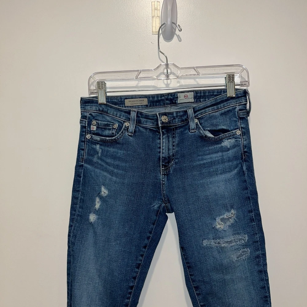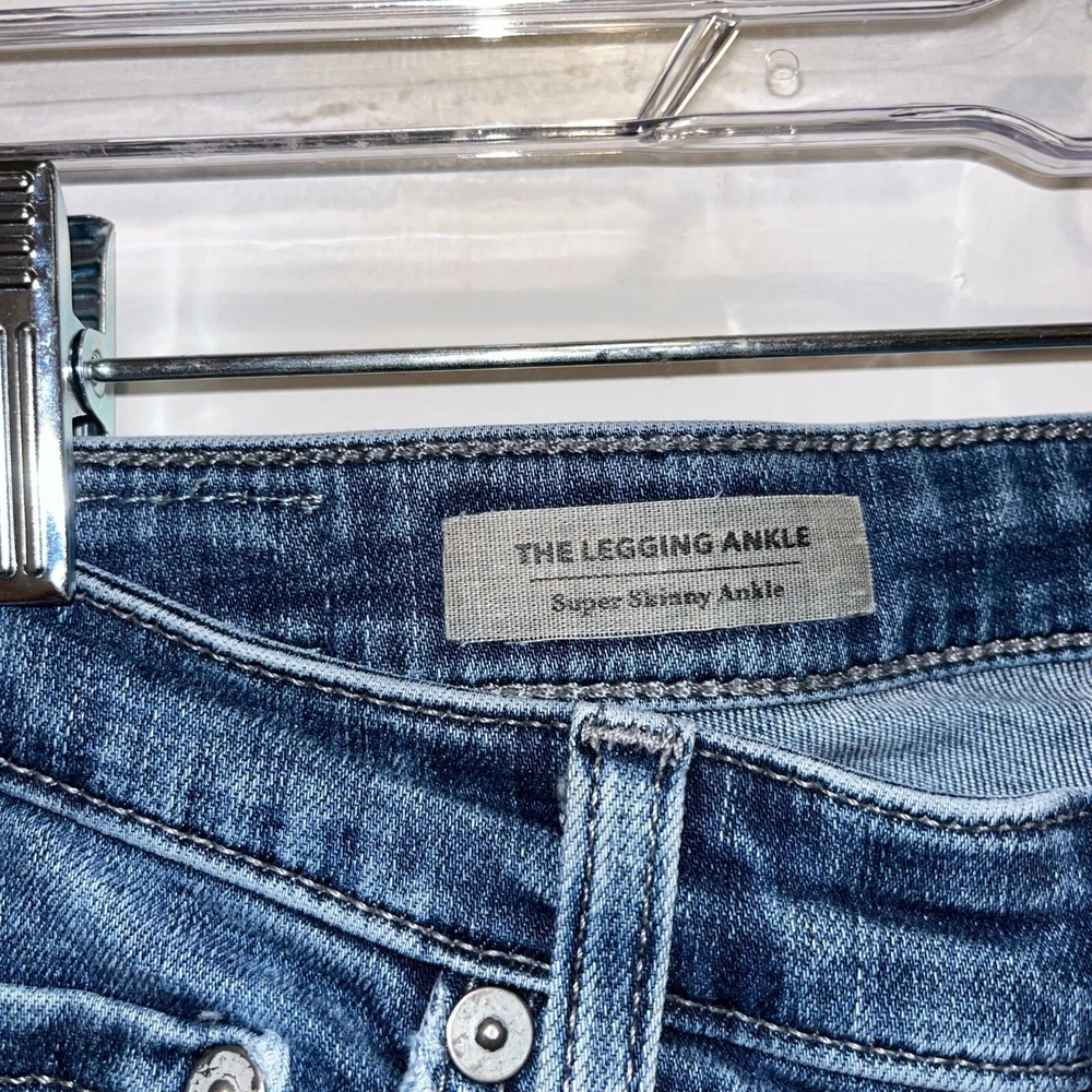 These AG Adriano Goldschmied jeans offer a stylish and contemporary look with their distressed detailing and super skinny fit, ideal for a modern wardrobe. The ankle-length design is versatile and can be paired with various footwear options, making them suitable for different settings. • The legging Super Skinny Ankle Fit • Distressed Design • Zip Fly Closure • Front & Back Pockets • Belt Loops Size 28 Smoke Free Home Great Preowned conditions