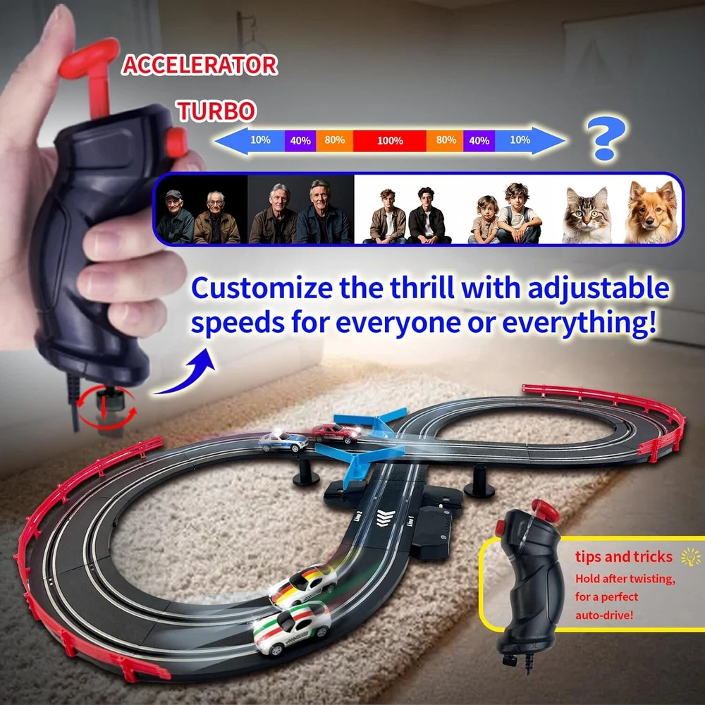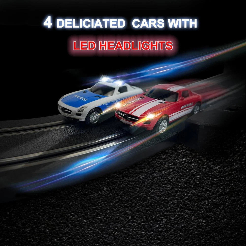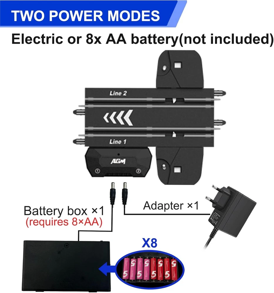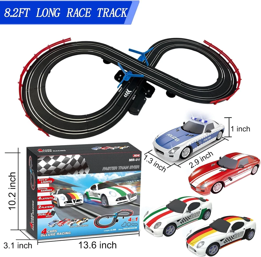 AGM MASTECH Slot Car Race Track Sets with 4 Exquisite Slot Cars, Battery or Electric Car Track, 2 Controllers, Lap Counter, Gift Toys for Boys and Girls Age 4 5 6 7 8-12 Product Details Product Dimensions: 1 x 1 x 1 inches Item Weight: 2.92 pounds Item model number: MR-01 Manufacturer recommended age: 8 years and up Manufacturer: YINGBAO INTELLIGENT TOYS CO,. LTD. Realistic Racing Track: Our slot car race track sets simulates a variety of racing tracks, including simple straight track, S-shaped track, circular track and exciting double-layer overpass track. Bring the coolest racing experience to the racers. At the same time, our race track has an automatic lap counting function, which can record the status of the race in real time, allowing the racers to concentrate on the race. Family Racing Fun and Friendship: Our race car track for boys age 4-8 8-12 is car toy for two racers, it comes with four slot cars, two durable remote controls (tested over 10,000 times). This is not just a friendship toy, but also a family toy, you can compete with your child, a great alternative to video games. High-Speed Remote Control Racing Fun: Our race car can reach a speed of about 300-370 mph on the electric race track, and you can fully feel the power and speed of the racing car in remote control racing. Plus, our kids race track set has two power modes, electric or 8xAA battery(not included), so your kids can experience the fun of racing at home or on the goHigh-Speed Remote Control Racing Fun: Our race car can reach a speed of about 300-370 mph on the electric race track, and you can fully fe Extra Long Tracks for Easy Installation: The slot car track is 8.2 ft long, which is longer than most other products, and has a better system to lock into place and easy to assemble. In order to keep the car on the track better, we have enhanced the magnetism, but it is also important to control the speed, remember to slow down when turning. In addition, we also prepare extra brushes on the bottom of the car for you, which you can replace at any time. Perfect Gift: Made of environmental abs plastic materials, high quality and durable. It is a good choice toy gifts for kids on Easter, Christmas, Halloween, Thanksgiving Day, New Year, etc.It's also be a great race car toys for kids 4-12 years old. If you have any questions about the product, please feel free to contact us, we will reply you within 24 hours.