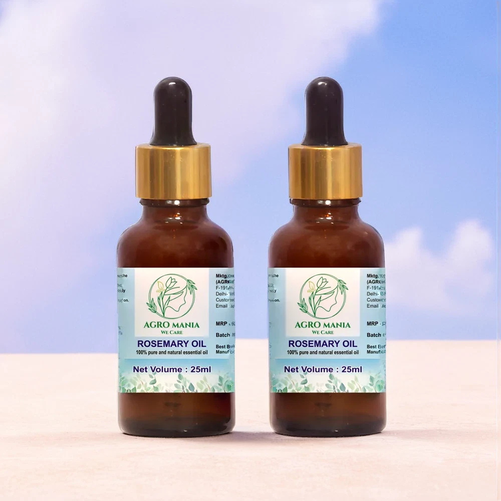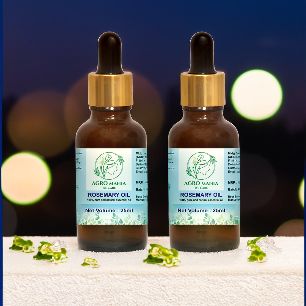 Number in Pack: 2 Type: Essential Oil Material: Glass Color: Clear Container Type: Dropper Bottle Brand: AGRO MANIA Scent: Rosemary Features: Organic Number of Settings: 2